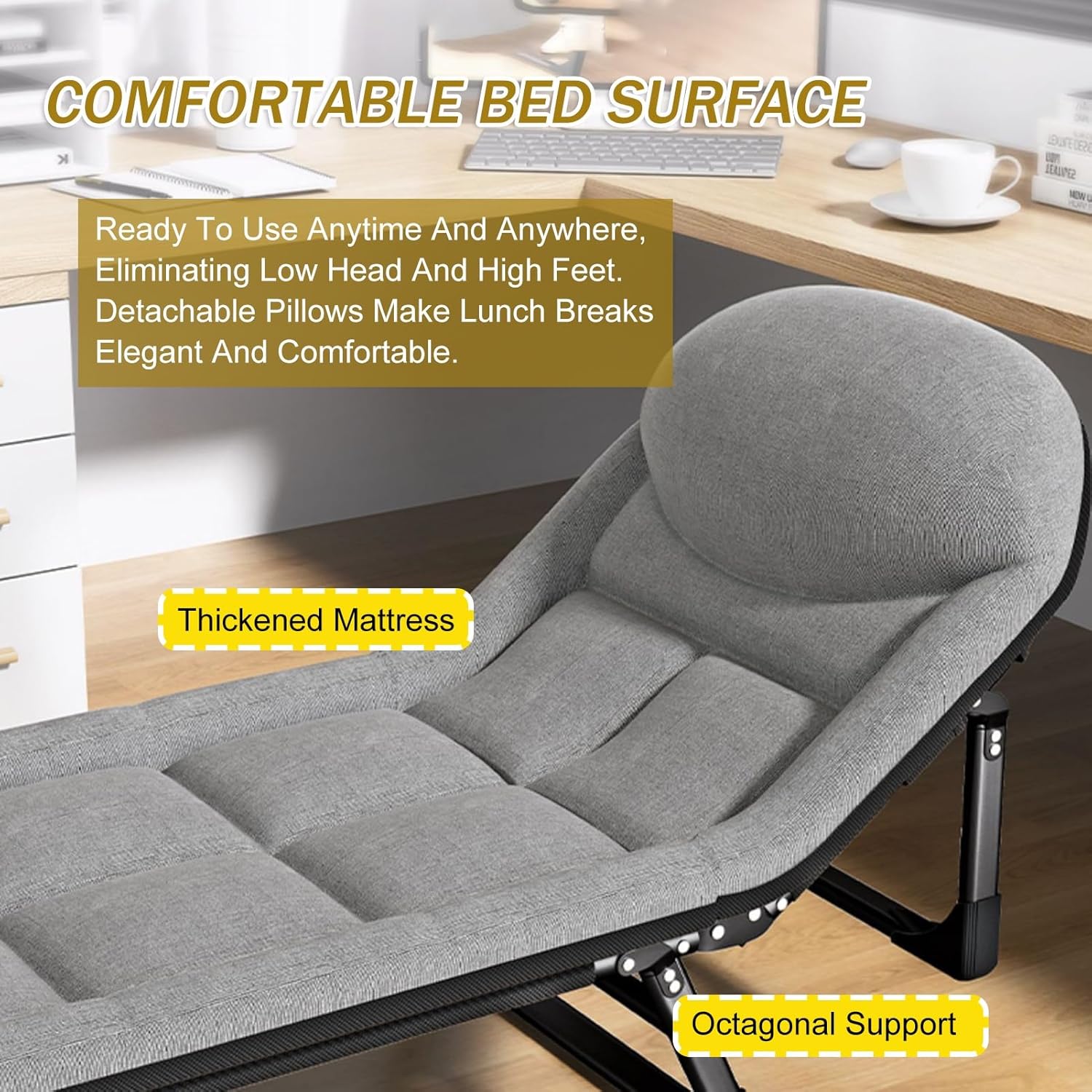 🏝️▶ Product Advantages ◀➤Our foldable adjustable bed with mattress beach lounger is designed with non-slip feet for stability. The Folding Bed also has a pillow and side pockets to provide comfortable support for your neck and head and help you fall asleep quickly.➤Adjustable folding outdoor bed for swimming pool, beach, hiking, camping, traveling, hunting, or as a sleeping bed in the office; also a perfect temporary bed when guests come to visit.🏝️▶Product specifications◀➤Material: cotton cloth+steel➤Color:Gray➤Overall dimensions:180×60×40cm/70.8×23.6×15.7in190×65×40cm/74.8×25.5×15.7in200×70×40cm/76.7×27.5×15.7in➤Applicable to: Camping, swimming pool, beach, terrace✔ Our friendly customer service team is always ready to answer any questions you may have about our products. Believe you will love our Folding Bed, it is perfect as a comfortable sleeping place at home, by the pool, at the beach or while camping