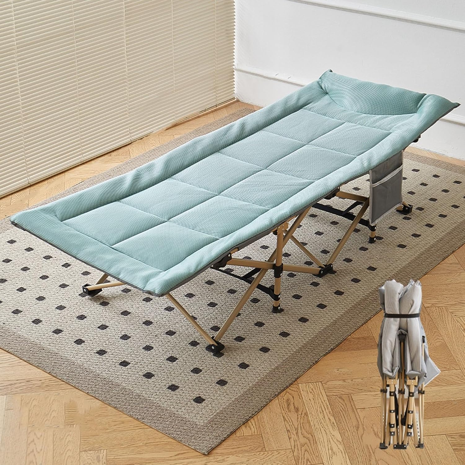 The sleeping cots can be folded and unfolded quickly and is easy to use. This portable folding bed is lightweight and easy to fold, making it perfect for outdoor activities such as camping, hiking, and traveling.Product name: Folding Camping CotMattress material: ice silk fabricProduct weight: 6.9kgBasic load-bearing capacity: 250KGFolding size: 96x25x25CMUnfolding size: 190x71x36CMPacking list:1 x folding bed
