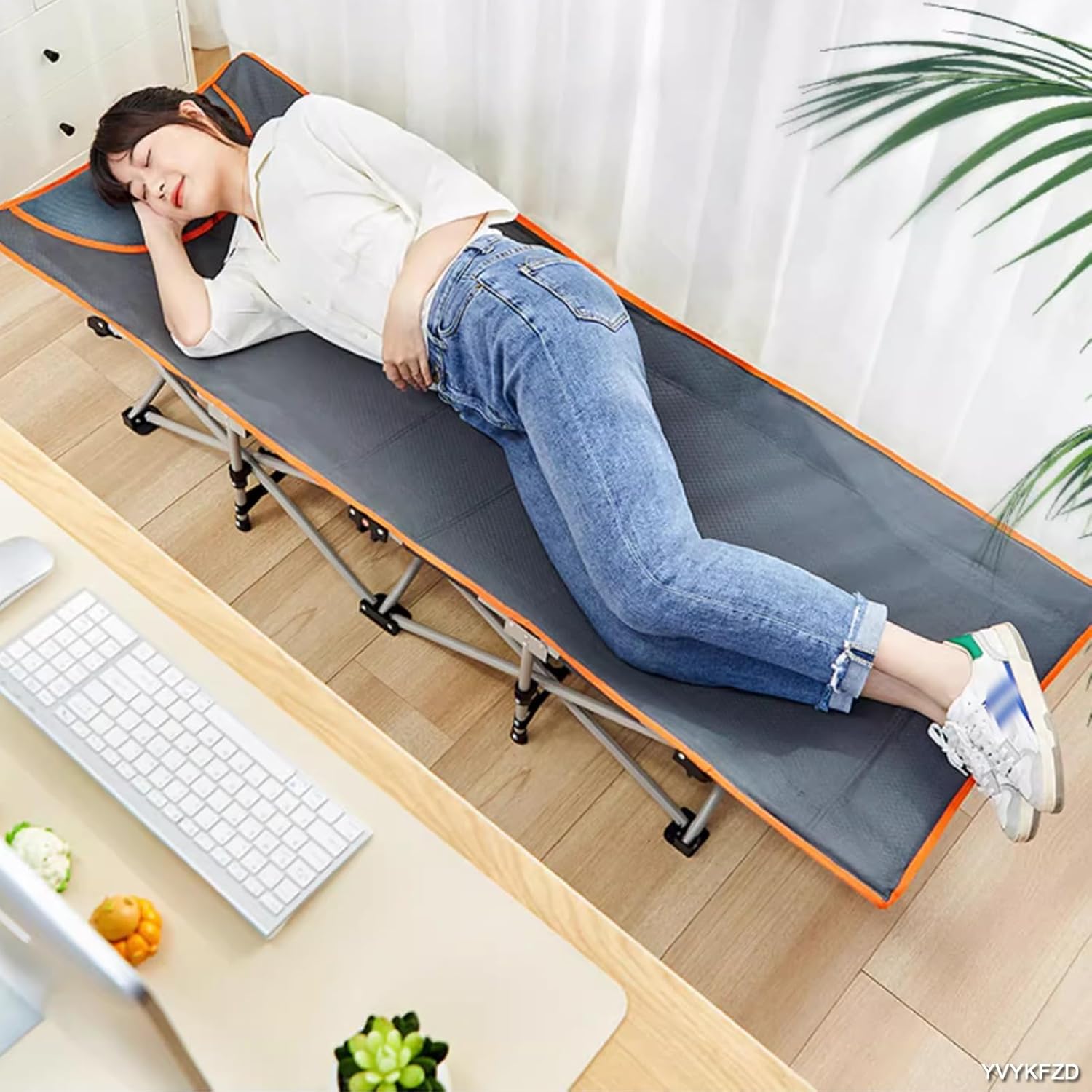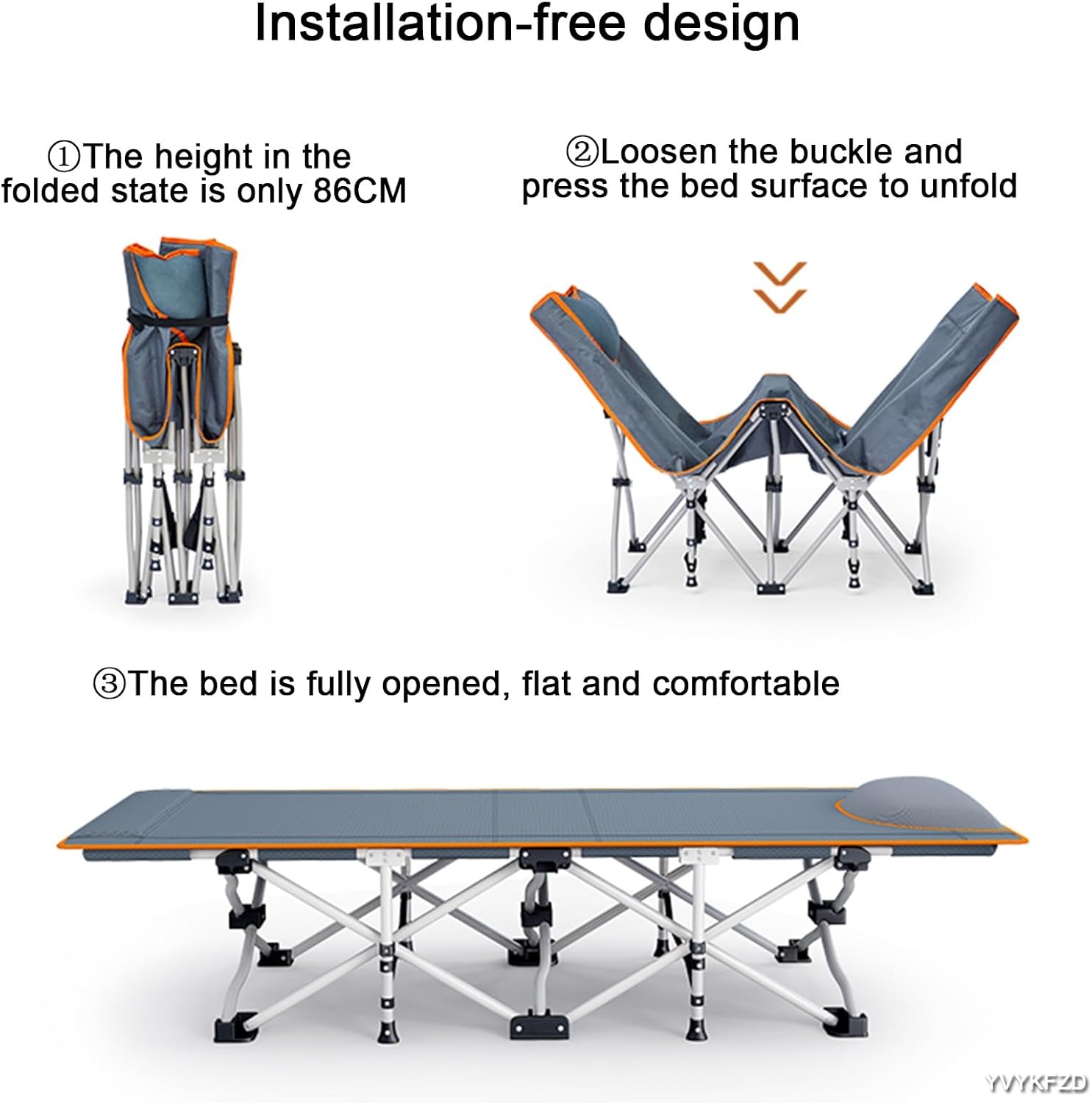 Thank you for visiting YVYKFZD store.* Camping cots provide an efficient space-saving solution, especially for smaller tents or camping areas. By elevating your sleeping surface off the ground, you can utilize the space underneath for storage or additional gear, maximizing your campsite's functionality.* Equipped with non-slip plastic foot pads, this cot offers excellent slip resistance and consistent stability, allowing you to sleep peacefully without any worries. * Furthermore, YVYKFZD camp beds are so portable that they can be effortlessly stowed away in the trunk of your car or carried with ease wherever you go.Product information:Product name: Folding camping cotProduct material: Bold steel pipe + Oxford fabricProduct features: Combination of sitting and lying, outdoor leisureGear adjustment: Free of installationSize: (LxWxH)160x57.5x28.5cm/62.9x22.6x11.2inMax load: 100kg/220lbNotes: 1. Due to the lighting effects and photographing angles, there is a color difference in the product, please understand.2. Please forgive me for slight deviations in product size due to manual measurement.