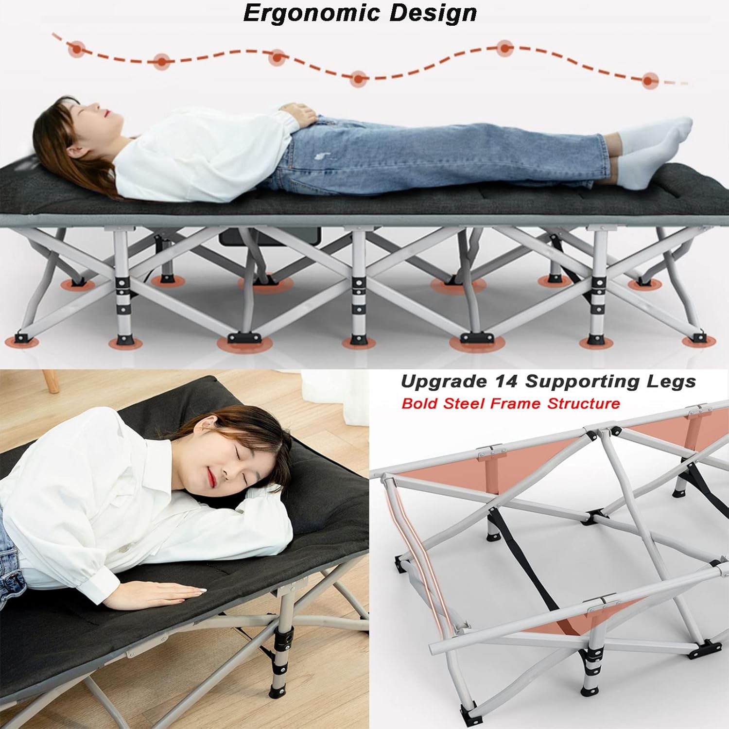• [STABLE AND DURABLE]: The frame of this folding bed adopts thickened steel pipe, which has strong bearing capacity, it is very stable. 14 supporting legs with anti-skid pads are firmly supported on the ground, which greatly increases safety. It easily supports up to 230kg.