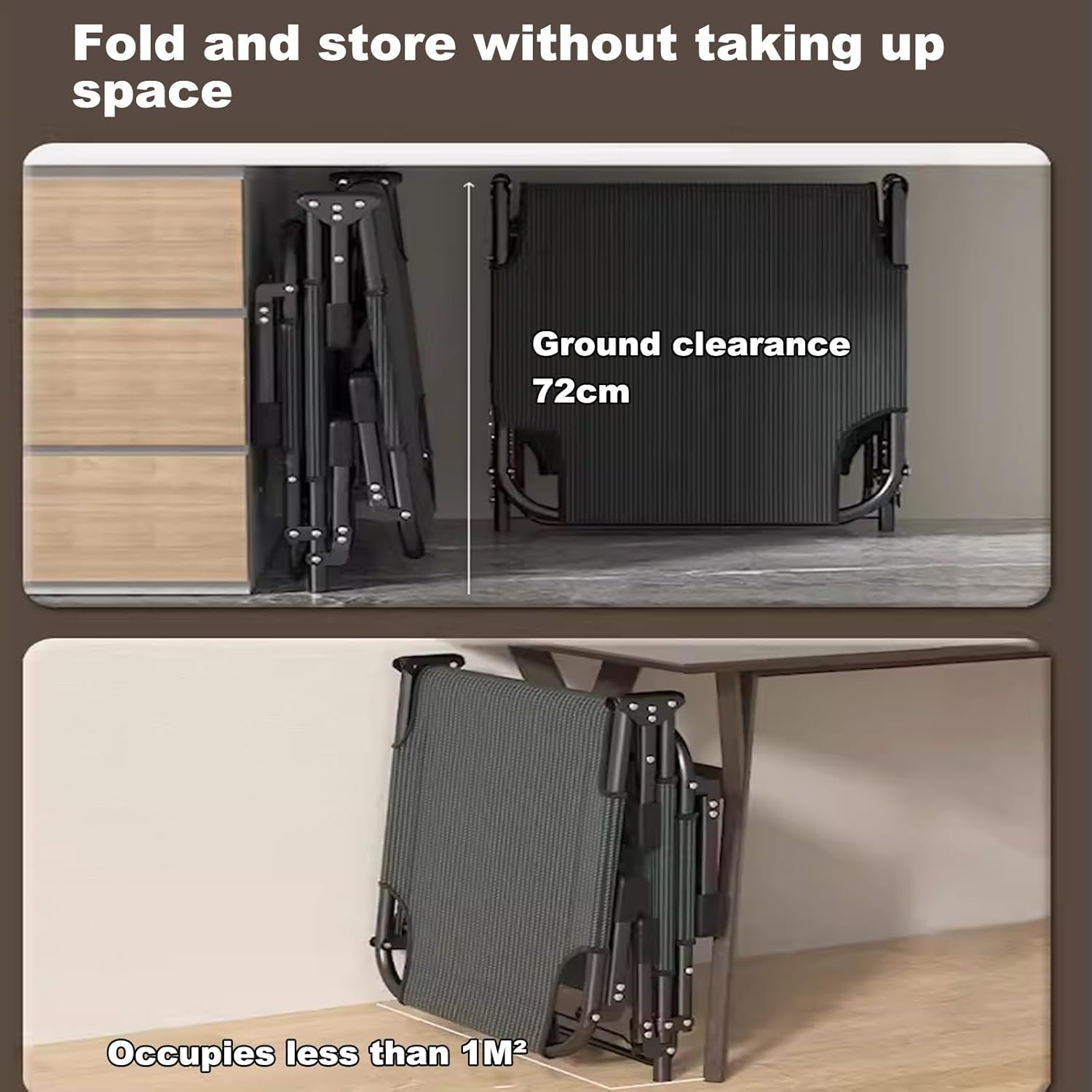 Introducing the Folding Bed with Mattress for Adults, a versatile sleep solution ideal for various settings, including offices, outdoor adventures, and camping trips. This portable bed is engineered with a sturdy steel frame that guarantees durability and stability, ensuring a comfortable night's rest wherever you are. Featuring a 4-position adjustable backrest, this foldable bed allows you to customize your support for lounging or sleeping. Whether you prefer sitting up to read or lying back to relax, this bed adapts to your needs, making it a great addition to your home or travel gear. The compact and foldable design of this folding cot makes it easy to transport and store. When not in use, simply fold it and tuck it away in a closet or car trunk, making it perfect for campers, travelers, or anyone needing an extra sleeping arrangement for guests. Product Details: - Name: Folding Single Bed - Material: Steel frame, Oxford cloth - Color Options: Green, Black, Gray - Dimensions: 67.7*11*22 in / 75.2*11*26.7 in / 75.2*11*28.3 in (172*28*56 cm, 191*28*68 cm, 191*28*72 cm) Important Notes: 1. Please allow 1-2 cm differences due to manual measurement. 2.Due to monitor differences, actual colors may vary from those displayed on your screen.