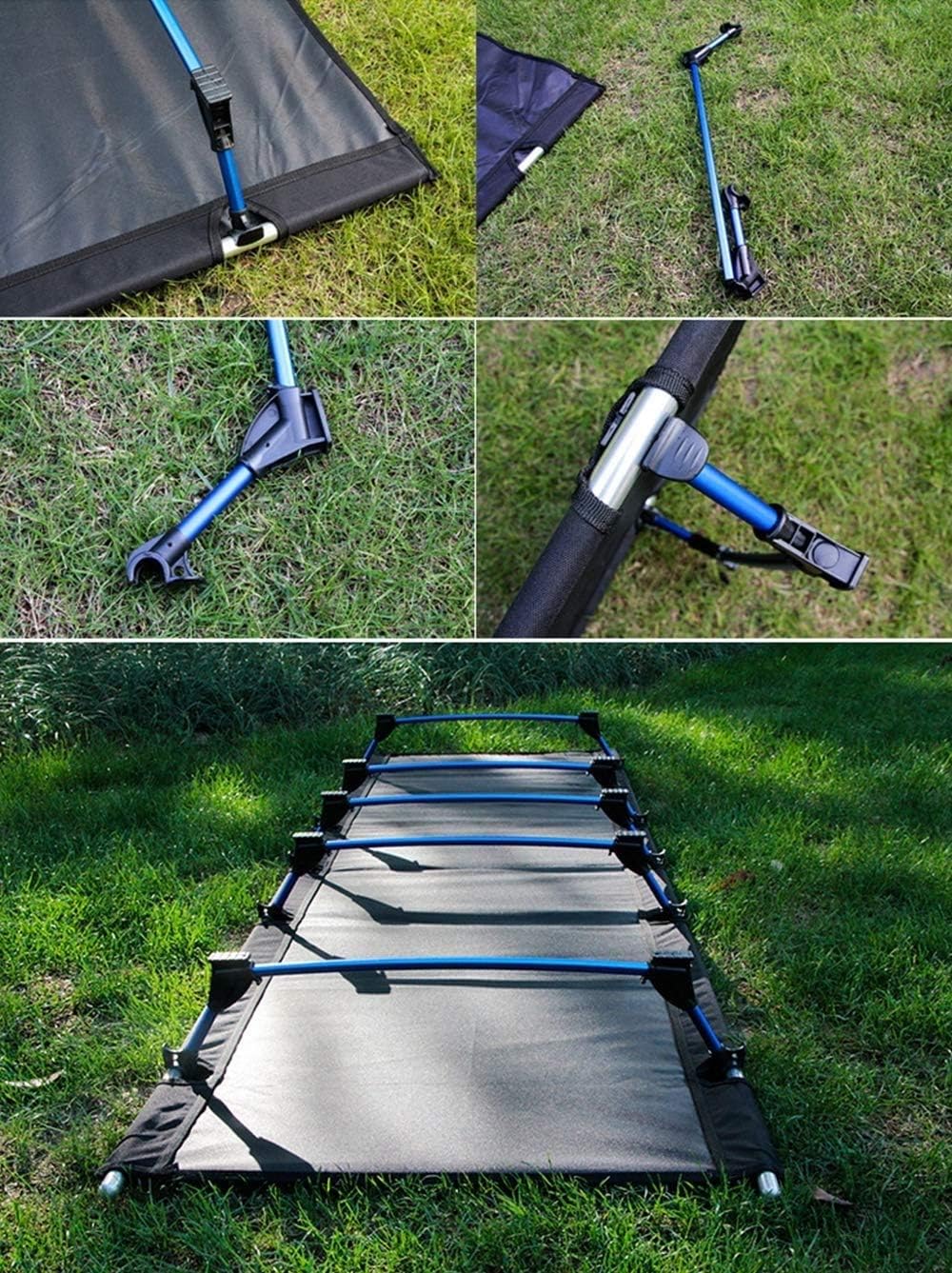 Dreaming of the perfect camping bed yet? All sizes and ages can finally enjoy expert from a perfect night's rest in bed this folding camping outdoors. And inflatable mattresses annoying and uncomfortable sleeping bag, in a bag, this luxury bed specifically designed for camping. Portable camping bed bed This convenient, , strong and can support cots can bring comfortable outdoor camping experience. It has a long and wide and comfortable design, strong bearing capacity. This steel does not crib assembly can be folded into a camping, hiking, fishing compact size, easy to use, or stroke, it is also very suitable as a guest bed. This camping bed so you have plenty of time to sleep! Product name Aluminum folding bed Bracket material 7075 aluminum alloy Weight 1.85kg Maximum load 150KG Hammock surface material Oxford cloth Colour: Black Size when used -185*60*14cm, when stored--53*11*11cm Material: Oxford cloth, 7075 aluminum alloy Components: 1 bed surface, 2 bed es, 5 leg es, 1 storage bag