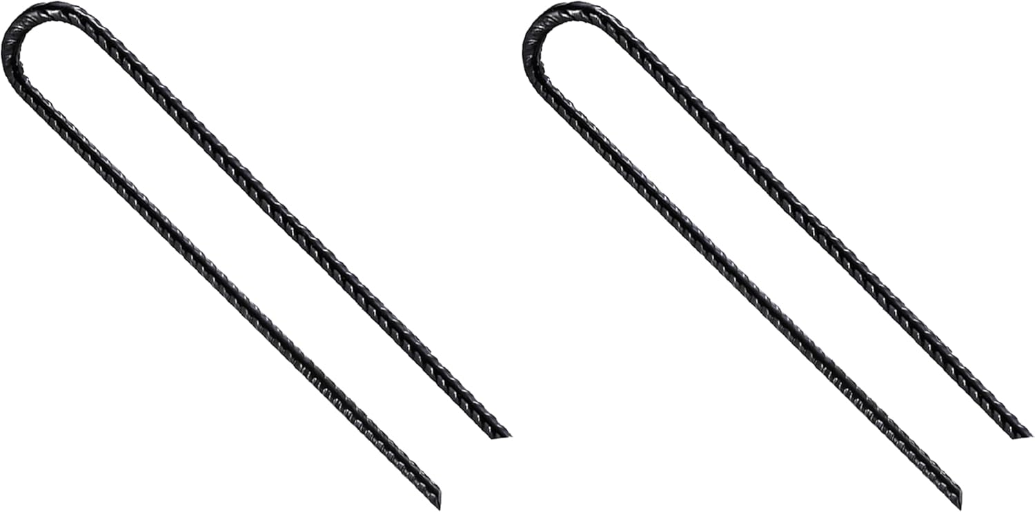 Wensilon Rebar Stakes U/J Hook Extra Heavy Duty,(50pcs)12 inch x 1/5 inch Rust Proof Coated Steel Ground Stakes Ground Anchors, Garden Stake Metal Stakes Tent Stakes Trampoline Anchors (U-Hook)