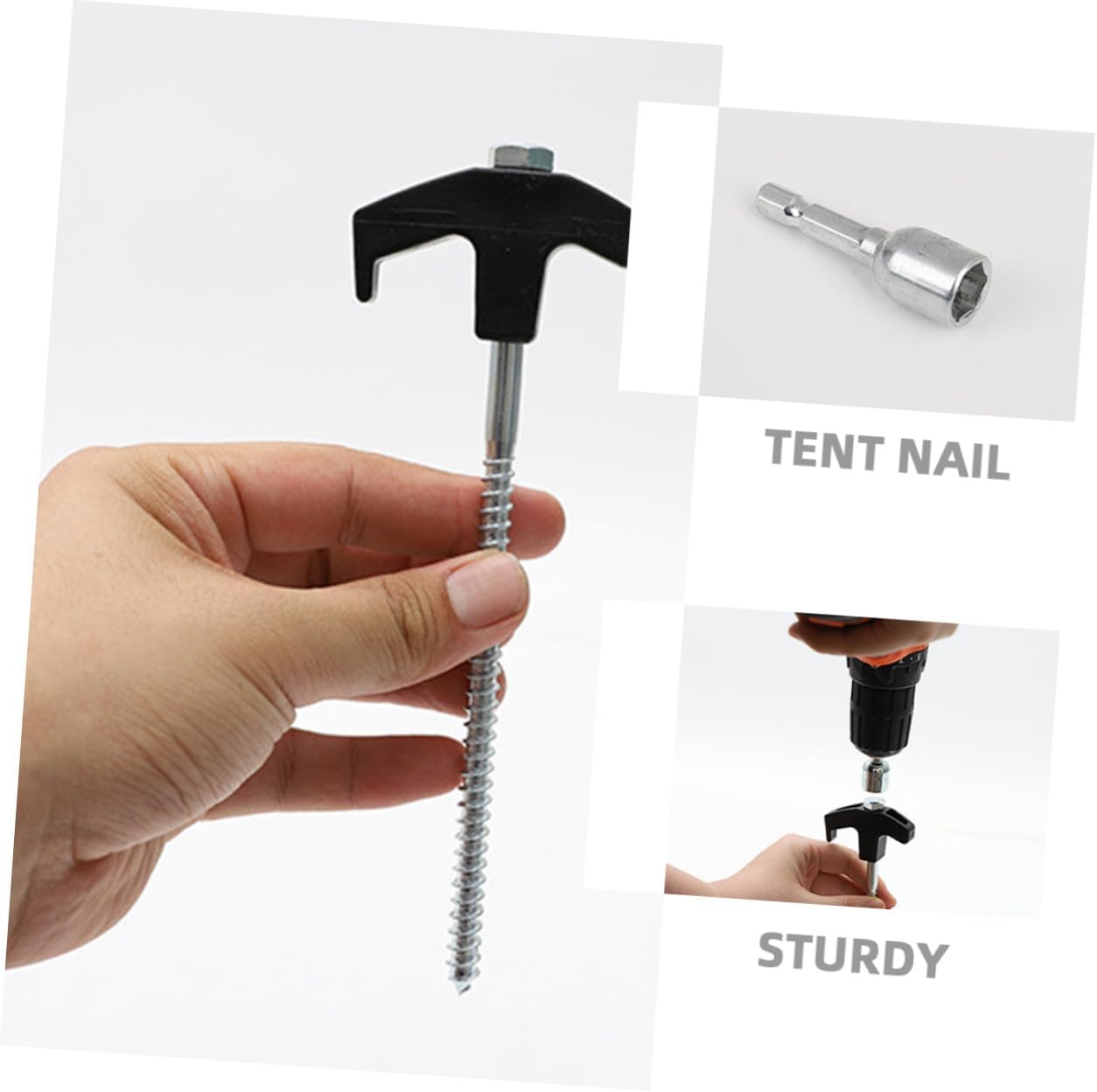 Package List 20 x Outdoor Tent Stakes 1 x Nut 1 x Stake Lifter Features -Size:18.50X6.50X0.80cm/7.27X2.55X0.31in -Material:Plastic,steel -Color:Black -Product Info:Floor nail set - The smooth design of the tip, not easy to hurt hands. Easy to pull out design, convenient for next use tent stakes for camping. - Using material of sturdy design and good craftsmanship, strong and durable for long serving life. - Suitable for beach, , tents, gazebos, tarps, groundsheets and gardening tent stake heavy duty. - The tent stake can secure your tent and hold it in place against winds and storm. Practical thickened design, easy to operate ground nail. - Lightweight yet heavy-duty strength while anchored and not easy to break, very practical to use tarp stakes.Goods Informationtent stake This is a Ground Stake for tent, specially designed into simple shaped, which aims to fix the tent well and this stake can be inserted into the ground easily.tent spikes heavy duty This tent stake can be used for many occasions, and can be used as tent pile, camping pile, tarpaulin hook, inflatable pile, etc