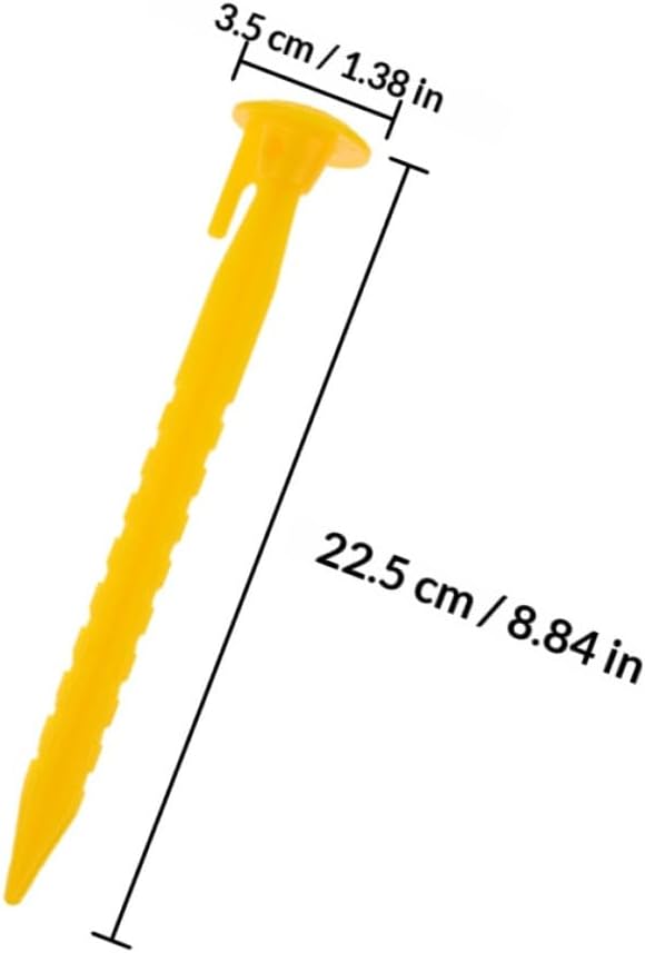 Package List 36 x plastic tent pegs Characteristics -Size:22.50X3.50X3.50cm/8.84X1.38X1.38in - performance: made from durable materials, these stakes are designed to withstand repeated use without breaking. -Firm ground hold: the serrated edges provide a strong grip, ensuring your tent stays anchored in various weather conditions backpacking anchoring pegs. -Product Info:Plastic tent nails -Multiuse functionality: suitable for camping, beach outings, and other outdoor activities, these stakes are versatile and useful heavy duty camping stakes. -Material:PP -Portable and lightweight: compact and easy to carry, these stakes are practical for travelers with packing space lawn tarp stakes. -Effortless installation: with a userfriendly design, these stakes can be quickly inserted into the ground, making tent setup simple and fast heavy duty tent stakes -Color:YellowGoods Informationtent nail These outdoor plastic stakes are designed with user convenience in mind.gardening anchoring pegs The sharp, pointed ends make them easy to drive into the ground, while the serrated edges ensure a firm hold.heavy duty gardening stakes practical for camping, gardening, and other outdoor activities, these stakes provide reliable anchoring for your tents, tarps, and other shelters