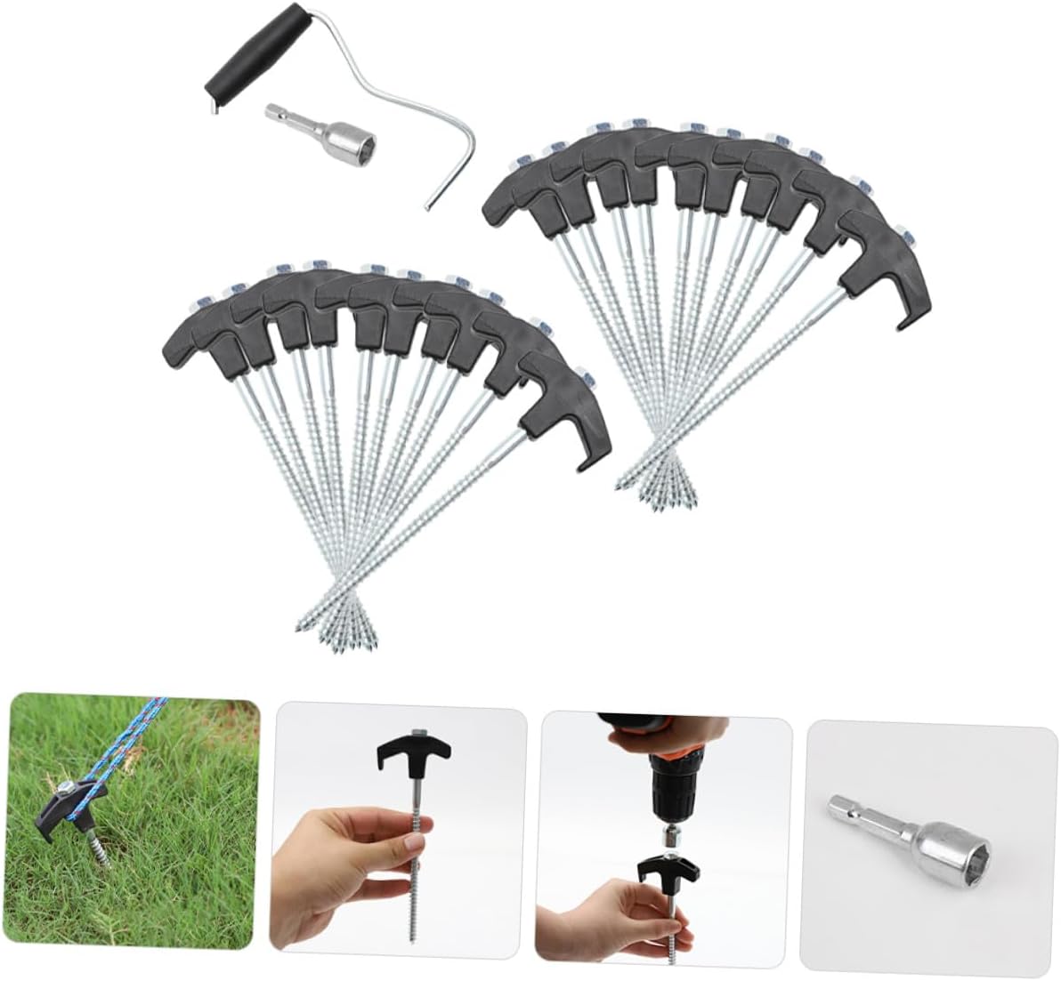 Package List 20 x Outdoor Tent Stakes 1 x Nut 1 x Stake Lifter Features -Material:Plastic,steel -Color:Black -Size:18.50X6.50X0.80cm/7.27X2.55X0.31in -Product Info:Floor nail set - Suitable for outdoor camping, camping tents, canopy-top and fixed tents. Long enough to withstand the wind replacement tent pegs. - The compact size is convenient for storage, practical use. You can carry tent peg when you go to camp easily. - Made from sturdy steel materials, durable to use. You can use the tent stake for a long time. - Easy to pull out the design and use next time. The reused design can save you money camping nail. - Portable tent stake with sharpen and thickened end, shows great ability in resistance and stress, strong holding power for sand and snow ground. You could also use it with tents or tarps camping tent stakes.Goods Informationsteel tent stakes This tent ground stake is suitable for outdoor use, tent, awning, canopy, etc.camping tent pole This tent ground stake is firm, sturdy and durable.tent stake heavy duty This Tent Stake is manufactured with good material for durable and use.tent anchors heavy duty Firmly inserts in to the ground and offers stable support for the tent