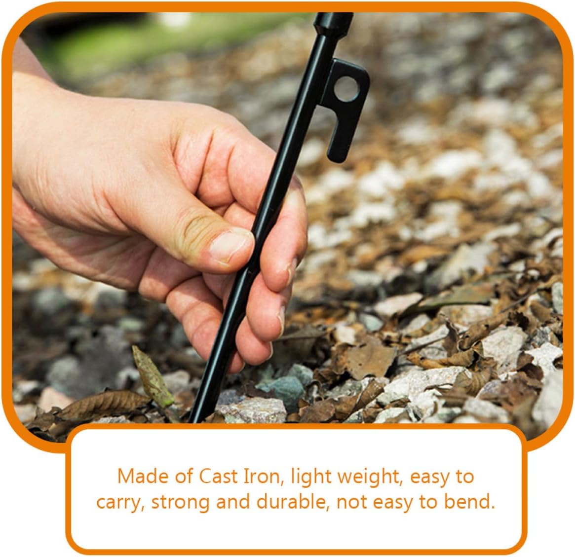 Package List 10 Ground Stakes Features -Product Info:Windproof nails -Size:25.00X1.50X1.50cm/9.82X0.59X0.59in -Color:Black -Material:Cast Iron -Firmly inserts in to the ground and offers stable support for the tent tent stakes for camping. -The tent stakes can be used on beaches, land and snow, not suitable for any land or stone land heavy duty ground pegs. -The part in sand tent pegs can adjust and lock the rope to prevent it skids outdoor tent nail. -Extra length and wide tent stakes with sharp and thickened end, shows great ability in resistance and stress, strong holding power for sand and snow ground. You could also use it with a tent tarp stakes. -Using Cast Iron made, these tent stake are durable, you could keep it for a long time heavy duty camping stakes.Goods Descriptiontent spikes heavy duty It is a great tent accessory that will meet your needs well.metal spikes for ground Made with craftsmanship and Cast Iron materials, it has durability and practicality.thickened tent pegs The reasonable design makes it easy to operate and use, and can provide more stable support for your tent.heavy duty ground pegs Are you looking for professional but tent stakes? Our products will be your good choice