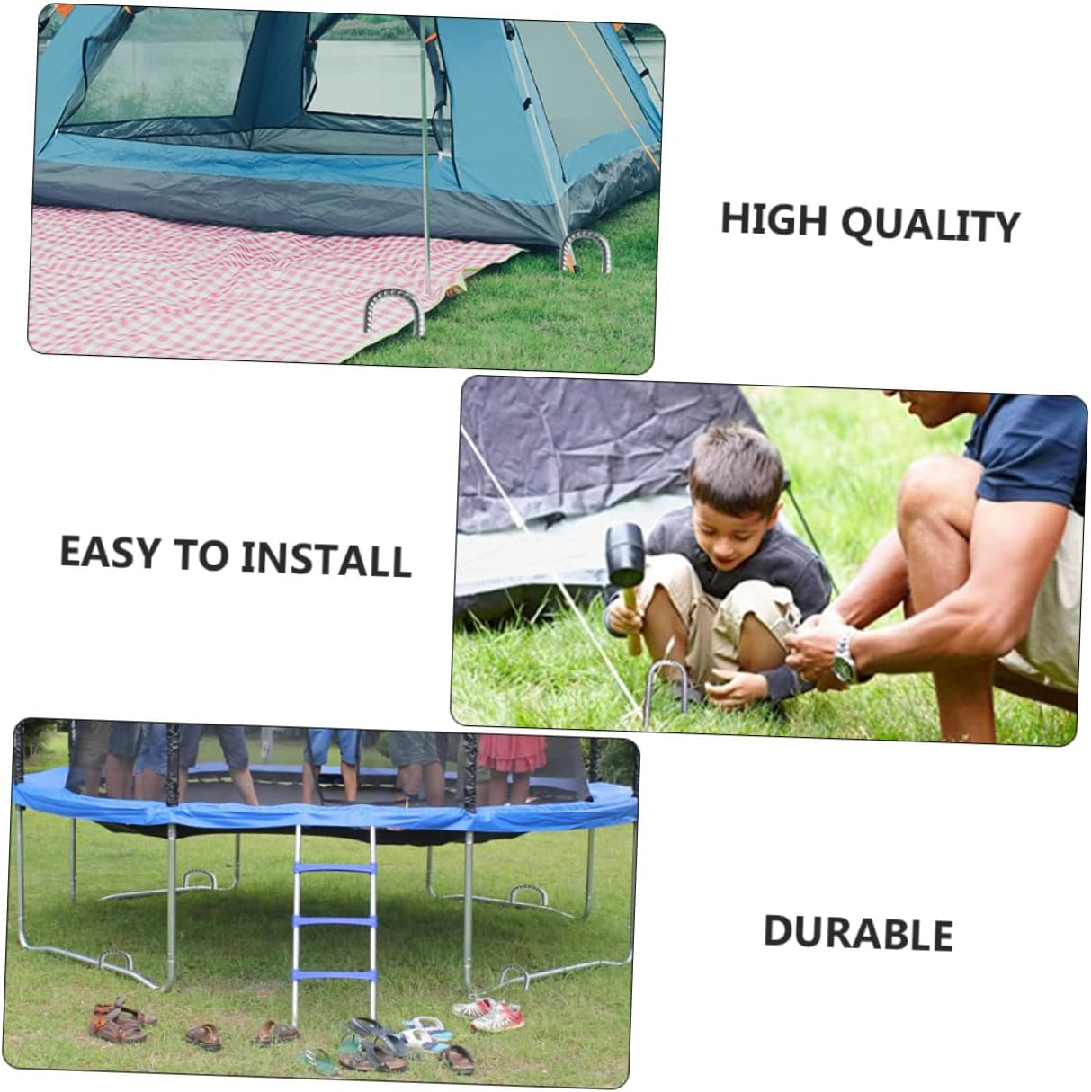 Package Include 4 Stakes Features - Size: Approx. 30.00X5.00X1.00cm/11.79X1.97X0.39in pet ground stakes. - Color: Silver tent fixing pegs. -Product Info:Tent floor nails - Material: Galvanized steel metal tent nails. - Widely applied in swing, trampoline, tent, awning, canopy, and other objects Outdoor Camping Supplies. - The double pointed heads allow you to easily insert them into hard clay or soil metal yard stakes. - Lightweight and portable, more convenient to store and use, not taking up any space camping steel tent stakes. - Can fix your tent, not easy to be blown by the wind landscaping staples. - Galvanized steel tent stake, hard and durable, not easy to deform and break outdoor tent ground nail.Goods Descriptionmetal ground stakes It can be inserted into the deep ground and connected to your tent rope to make it firmly fixed.camping stake hook Do you like outdoor camping? Are you still looking for a ground nail? If so, our tent stake kit is carefully prepared for you.Camping Canopy for camping and outdoor activities, such as night fishing, party, family gathering, etc