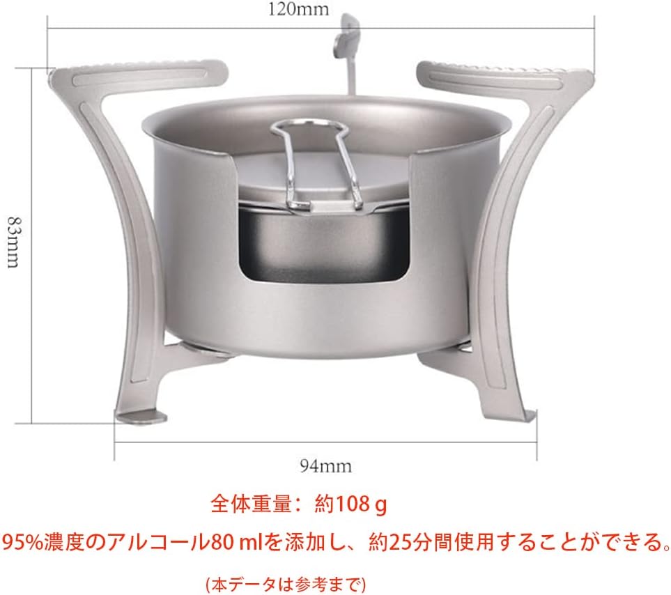 Features: 1. Titanium Made of premium titanium, it is lightweight, will not rust, corrode resistant from acid and alkali, scratch and heat resistant. 2. High combustion efficiency The alcohol stove is designed with a double layer design. The top of the furnace has 2 levels, a total of 24 micro-pores that produce a stable flame for faster cooking. 3. Ash is discharged immediately Pot stand can be used as a wood stove and there are 12 holes in the bottom, after burning ashes can be discharged quickly, preventing excessive ash from affecting the fire. 4. Quick frame out One of the drawbacks of alcohol stoves is that the flame cannot be controlled, but the stove includes a folding flame regulator, which can be adjusted to the heat and extinguished when finished. 5. Outdoor all-around stove. Spirit Stove is known among outdoor enthusiasts as a high quality alcohol stove and mini wood stove perfect for camping kitchens. Instant cooking anywhere A necessary tool for outdoor use.