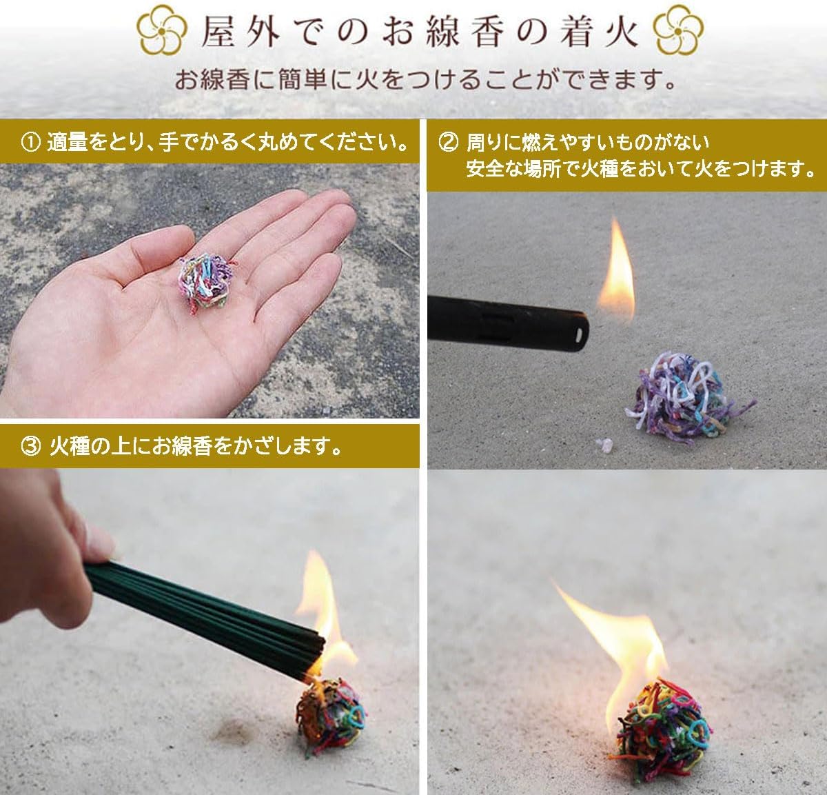This is a handy "Easy Chucker". A fire starter made of high purity wax infused with cotton thread. Use the appropriate amount together for barbecues, wood stoves, fireplaces, etc. Available in Mini (0.7 oz (20 g) / 7.1 oz (20 g) / 7.1 oz (200 g) / Jumbo Due to the nature of packaging, it may arrive flat, but it does not affect using it as is. Also, if you want to sphere, please warm it with your hand to shape it. Made in Japan... We create products that are "to use good things with heart".