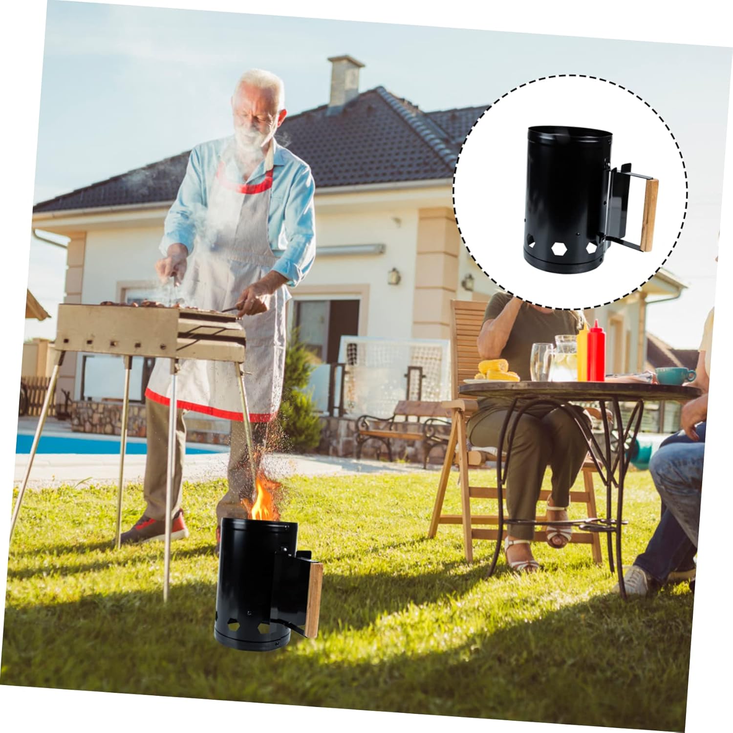 Package List 1 x BBQ Ignition Barrel Characteristics -Material: Metal, wood bbq accessory outdoor -Size: About 27.50X17.00X17.00cm/10.81X6.68X6.68in fire starting -Color: Black starter cooking tool -The chimney starter is practical and -proof, and has a . The wood handle is designed to burns Outdoor Barbecue Tool. -High temperature resistance, safety and scald prevention, quick charcoal point fire starter camping. -Multiple air holes to ensure air flow, make the charcoal quickly ignited charcoal accessory. -Safe, no , no peculiar smell to food, tool is faster than the commonly used square starter fire cooking accessory. -Large open mouth make it convenient to quickly pour the charcoal out grill chimney starter.Goods Descriptiongrill tool outdoor Large diameter holes at the base for lighting your lighter fluid or newspapers to start the charcoal.starter cooking tool The generous ventilation holes on charcoal chimney can canister will ensure the charcoal have excellent air circulation and heat generation.grill igniter This charcoal chimney starter is constructed with metal and wood
