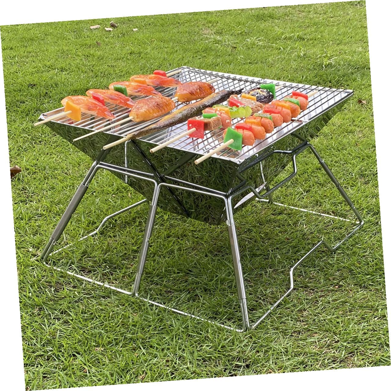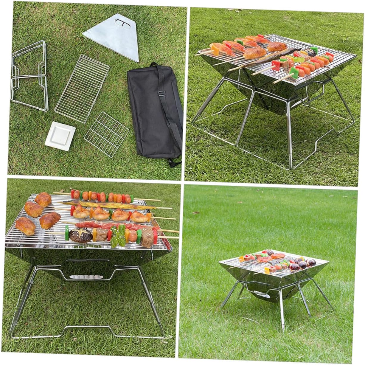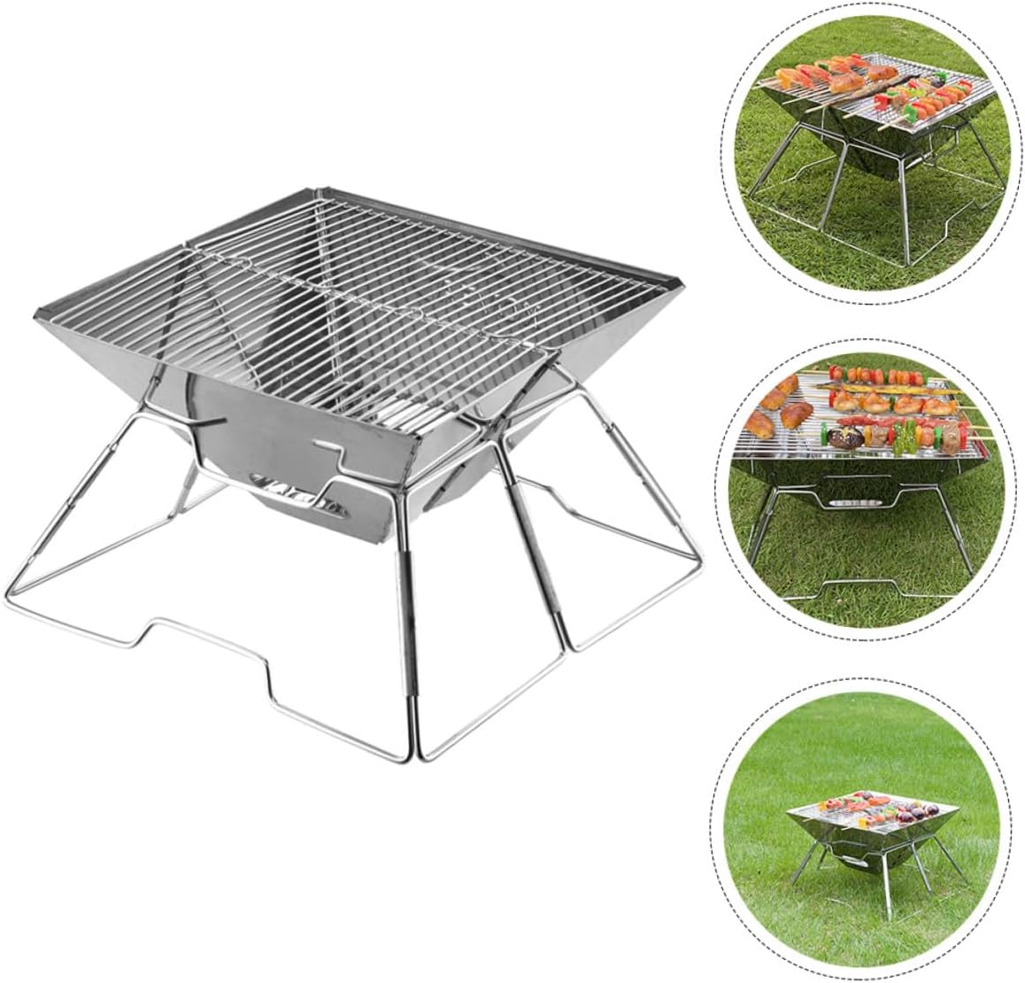 Package List 1 x Grill 1 x Storage Bag Features -Color: Silver -Material: Stainless steel -Product Info:Portable barbecue stove -Size: 31.00X31.00X22.00cm/ 12.18X12.18X8.65inch - Multi-functional and versatile, can be used as a BBQ grill, an outdoor camping grill outdoor tabletop charcoal grill. - Using stainless steel material, not easy to deform and break, a nice grill for you. - Waterproof and wear-resistant, durable and firm, it has a long serving life portable grills. - This grill rack is foldable design, does not occupy space when not in use camping grills. - The grill is design has good air circulation, ensuring your safety charcoal grills portable.Goods Informationsmall outdoor grill Are you looking for a professional, yet BBQ grill? Are you in search of a sturdy, trustworthy BBQ grill that can be used to do multiple jobs at once? , ! Our high-class folding BBQ grill must meet your needs.portable outdoor is one of the for you