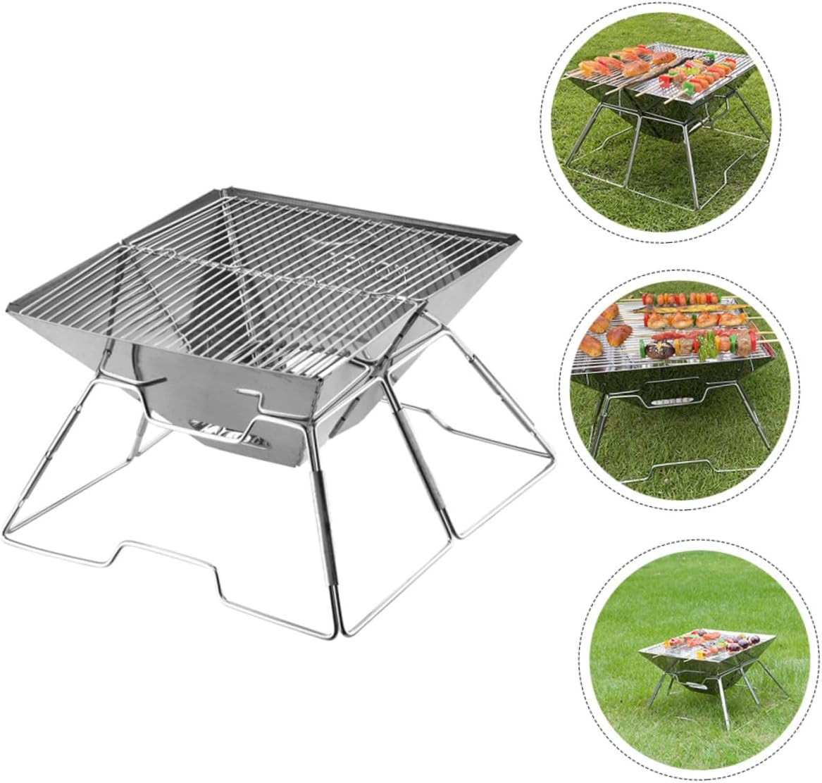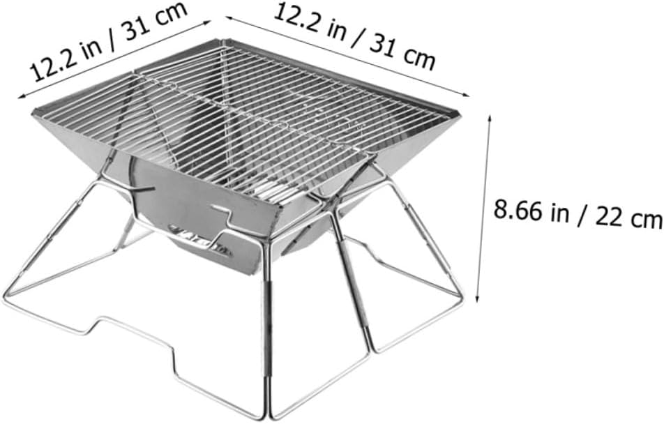 Package List 1 x Grill 1 x Storage Bag Characteristics -Product Info:Portable barbecue stove -Color: Silver -Size: 31.00X31.00X22.00cm/ 12.18X12.18X8.65inch -Material: Stainless steel - Using charcoal as the burning material, suitable for outdoor leisure barbecue, also suitable for home use. - This BBQ grill is easy to clean the surface oil is easy to be portable foldable barbecue rack. - High-class stainless steel material, durable and strong, not easy to break and deform. - When not in use, fold and replay into the cabinet, not occupy large space small portable grill. - It features creative design, which is natural and beautiful, convenient to use portable barbecue grill.Goods Informationcampfire cooking equipment We adopt high-end stainless steel, can keep it for a long time.portable outdoor barbecue grill Meanwhile, it owns a practical design.small portable grill If you are looking for a reliable material and barbecue grill, then our grill might be .portable grills for camping It would be your best barbecue helper