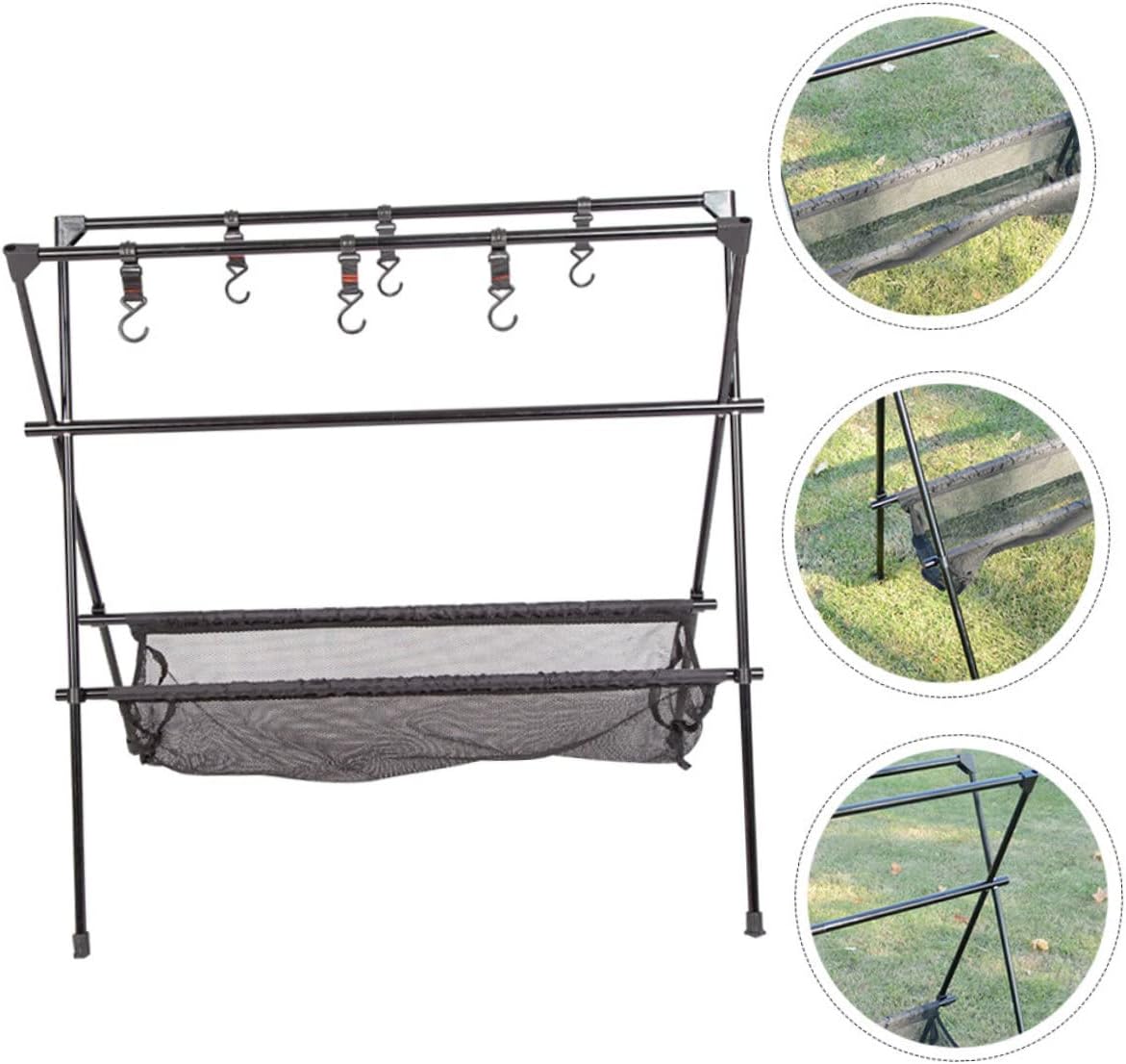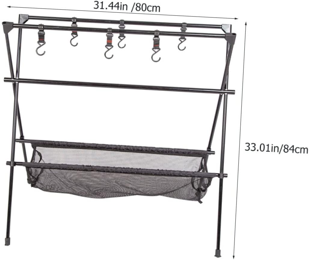 Package Include 1 x Set of Camping Tripods Characteristics -Material: Aluminum Alloy Grill Mesh Stand -Size: 84.00X80.00X52.00cm/33.01X31.44X20.44in Grill Storage Stand -Color: Black Foldable Grill Rack -The unique design and craftsmanship ensure its popularity and practicality Folding Camping Stand. -The camping rack greatly facilitates your outdoor travel life and camping Foldable Camping Rack. -This rack is small and light, outdoor camping, hiking, traveling, picnic, barbecue, fishing, garden, balcony, etc Picnic Sundries Rack. -Our camping frame is made of good, with good toughness, wear resistance and resistance Foldable Food Rack. -You can suspend and store your water cups, kettles, kitchenware or other items Camping Storage Rack.Goods InformationMetal Rack Fine workmanship and good texture ensure practicality.Camping Storage Rack This camping storage rack is made of high-end aluminum alloy material, which is and .Picnic Mesh is characterized by hard metal material, high durability and to deform
