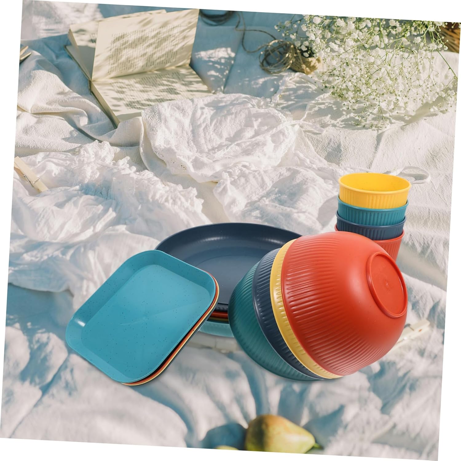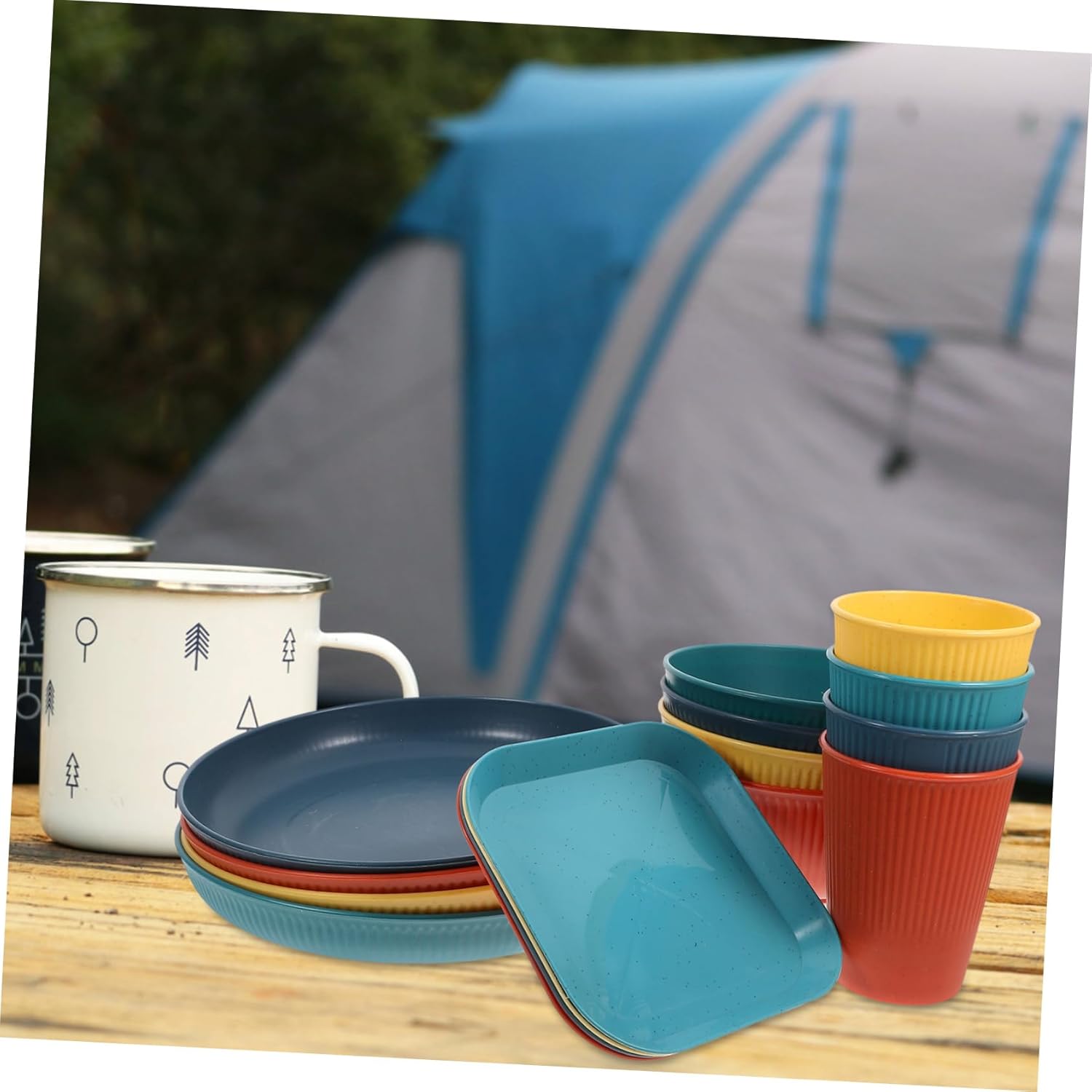 Package Include 8 x plates (2 sizes) 4 x bowls 4 x cups Features -Material:PP plates and bowls -Size:14.50X14.50X1.60cm/5.70X5.70X0.63in camping dishes -Size:14.80X14.80X7.30cm/5.82X5.82X2.87in outdoor dinnerware -Size:22.70X22.70X3.50cm/8.92X8.92X1.38in -Size:10.60X8.30X8.30cm/4.17X3.26X3.26in -Color:Assorted Color -Made from PP materials, this dinnerware set is resistant to breakage, last for a long time unbreakable dinnerware. -With a complete set of plates, bowls, and cups, this dinnerware set is great for outdoor gathering unbreakable plates. -The sleek appearance of this dinnerware set gives it a fashionable and sophisticated look, making it a great addition to any outdoor event outdoor dishes. -The stylish design of this dinnerware set adds to any table setting, while also being practical and functional. -This dinnerware set is for outdoor gatherings, such as camping, parties, and barbecues.Goods Descriptionunbreakable dinnerware It includes plates, bowls, and cups, nice for outdoor gathering.outdoor dinnerware The tableware set is designed to be resistant to breakage.unbreakable plates The design adds of elegance and practicality to your dining experience.outdoor dishes This tableware set is for camping, parties, and barbecues