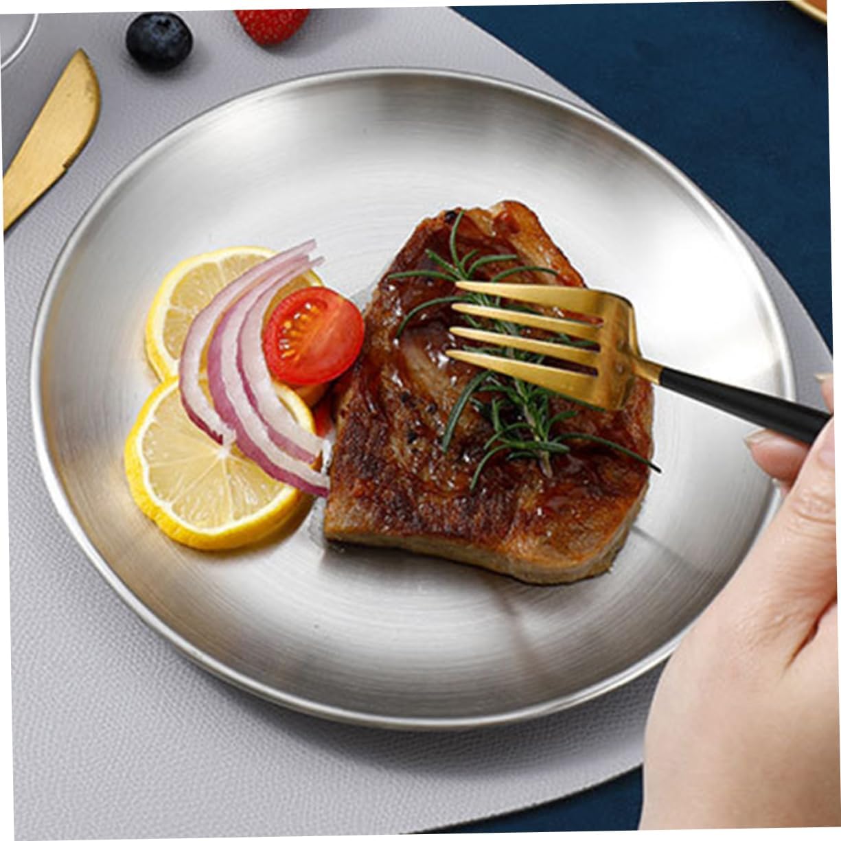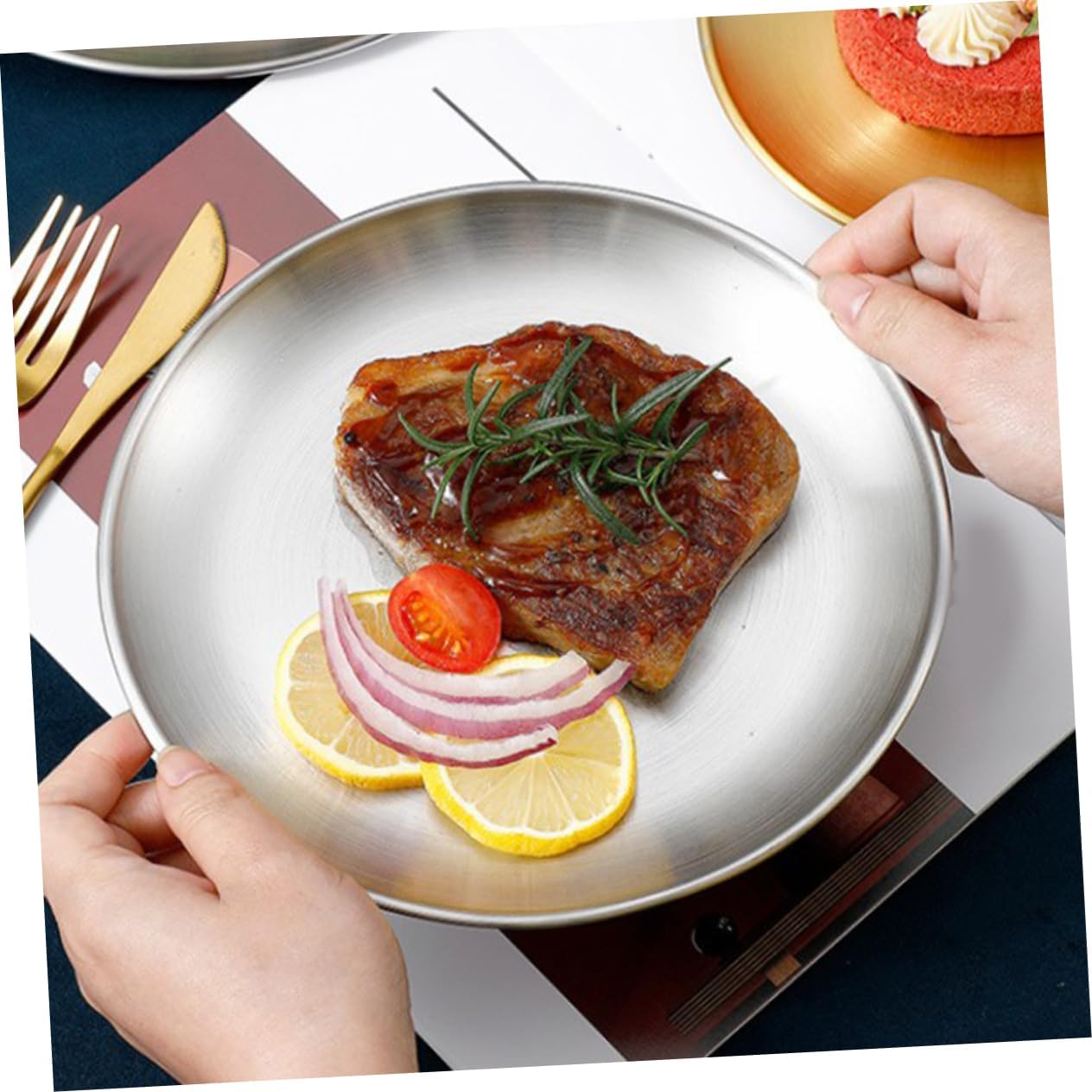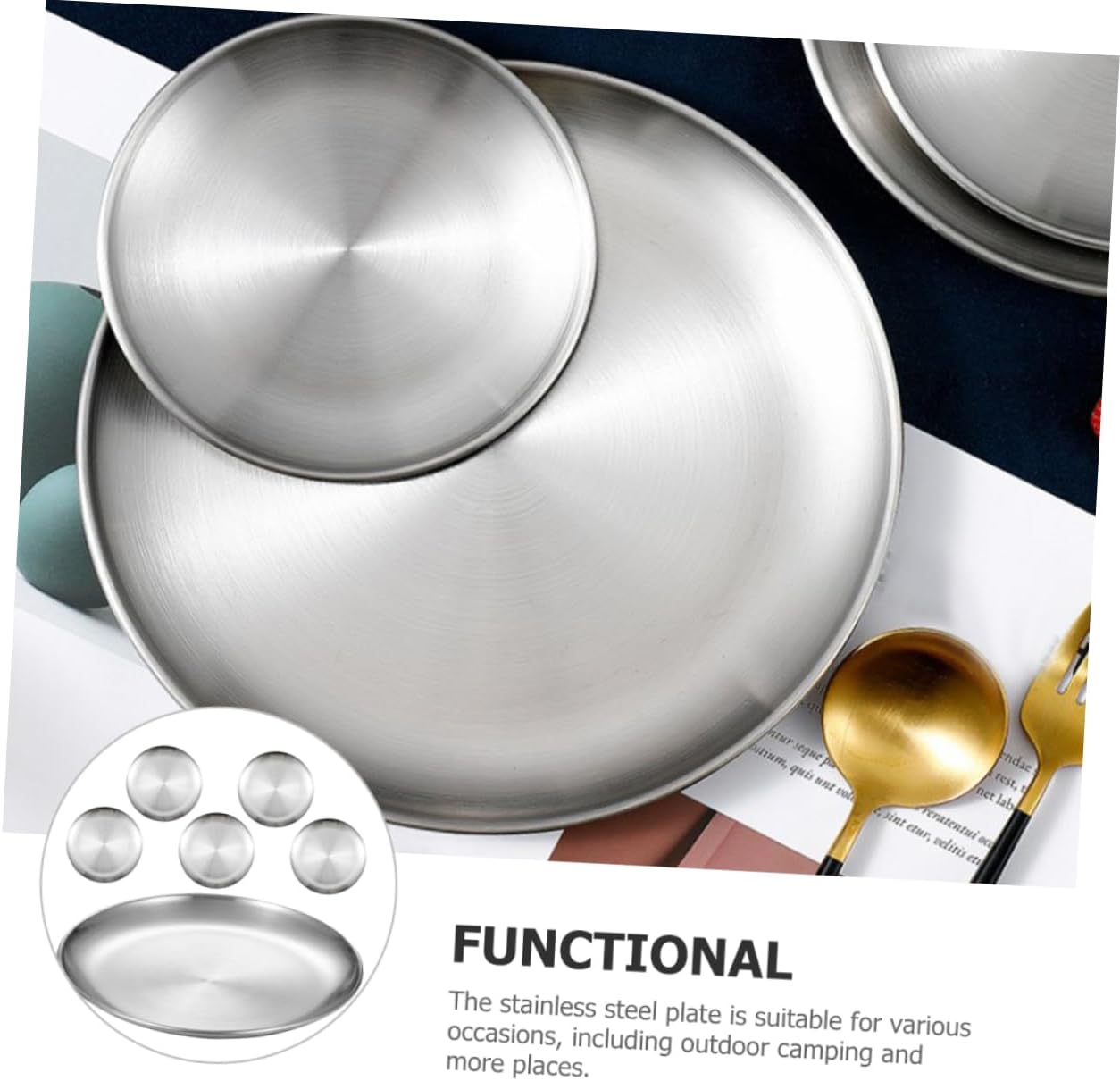 Package Include 6 x stainless steel plates Characteristics -Color:Silver round dish -Size:26.00X26.00X1.70cm/10.22X10.22X0.67in snack plate -Material:Stainless steel metal plates -This plate is made of stainless steel, which can have a fully great eating experience, convenient. stainless steel plates -This set of stainless steel plates, for meals and outdoor camping, useful. camping plates -Conveniently dishwasher , allowing for easy and hassle- cleaning, give convenience stainless steel -Made from sturdy stainless steel material, ensuring durability and resistance to , camp plates. -The stainless steel plate is suitable for various occasions, including outdoor camping and more places camping dinnerware.Goods Informationcamping plates Made of stainless steel material, it is and to .beef meat plate The stainless steel plates set is for various dining needs.camping metal plate The plates can be easily cleaned in the dishwasher, making it convenient and time-saving, ideal for outdoor camping and other activities. plates It is reusable, and suitable for long-term use