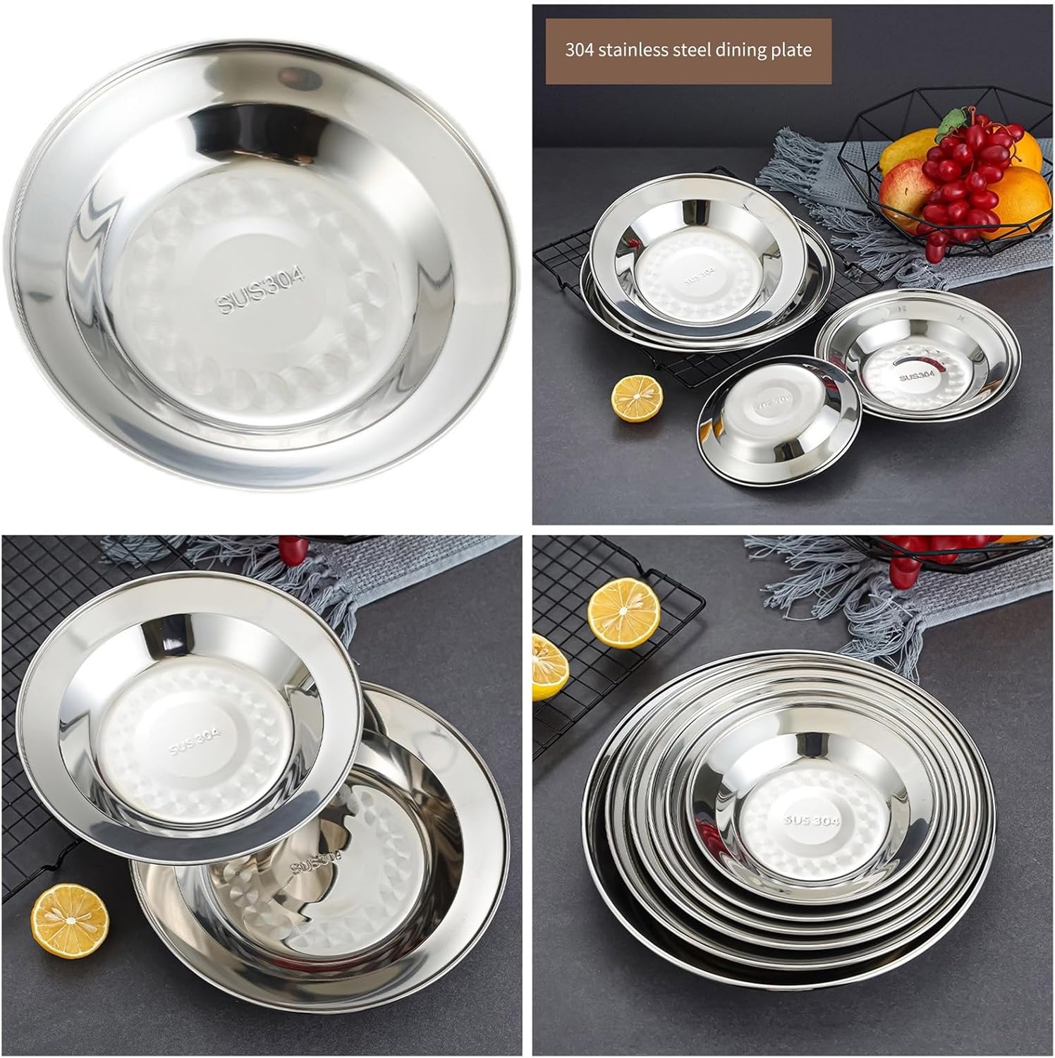 5 Pack Multifuntional 304Stainless Steel Plates Food Plate Cooking Plate Suitable For Parties Picnics And Family MealsFeatures:blend of durability and elegances with our 304stainless steel plates, important for every kitchen.Crafted from 304Stainless Steel, these plates, maintain their shape over time, and are easy to cleans, ensuring they look great on any table setting.Suitable for culinarys enthusiasts and consumers, this set caters to anyone with a passion for cooking and appreciation for dining.Multifuntional enough for family dinners, parties, picnics, or camping, these 304Stainless Steel plates add a touch of sophistication to any mealtimes occasion.Not only practical for daily use, this elegant plate set also make excellent present for housewarmings, weddings, or as present for friend who love to entertain.Specifications:Texture: 304Stainless SteelSize: As Pictures ShowPackage Includes:5Pcs PlatesNote:Please allow 1-2cm errors due to manual measurement.Due to the differences between different monitors, the picture may not reflect the actual color from the item.