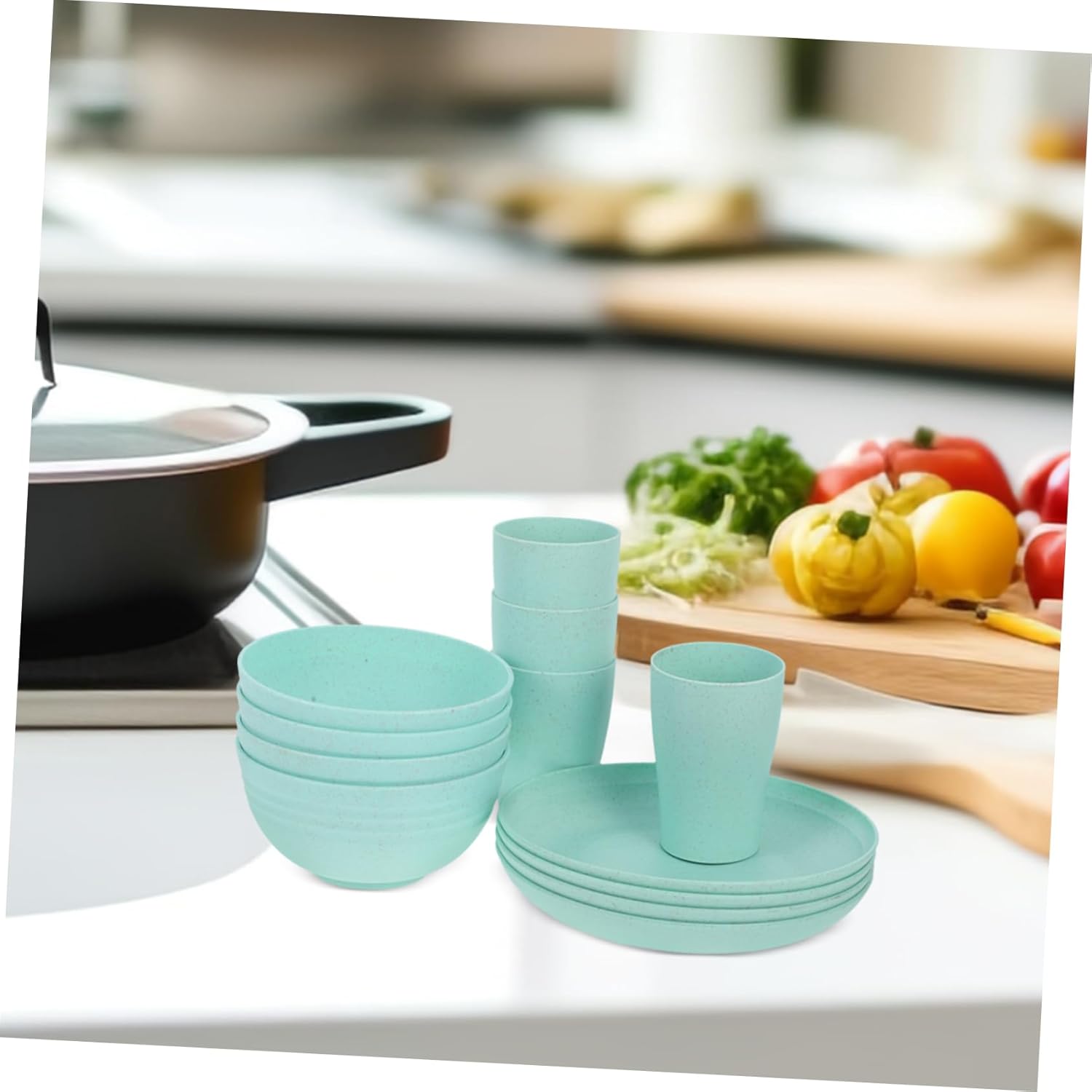 DescriptionOur plastic dinnerware set is designed to make mealtime enjoyable. The set includes plate bowls and cups that are microwave safe, allowing you to quickly reheat leftovers or prepare meals. The unbreakable construction is great for toddlers who are still mastering their motor skills. Lightweight and easy to handle, these dishes are also great for outdoor activities like picnics and camping.Features- Color: Light Green-Material:Plastic- Size: 20.00X20.00X3.00cm/7.86X7.86X1.18in - Size: 15.00X15.00X7.30cm/5.89X5.89X2.87in - Size: 10.40X7.40X7.40cm/4.09X2.91X2.91in - build: made from plastic, this dinnerware set is designed to handle everyday use without easily breaking or wearing out-Microwave safe: these plate bowls and cups are microwave safe, allowing you to heat your meals directly and conveniently-Multifunctional: suitable for a variety of settings including family dinners, picnics, and parties, this set offers great versatility-Stylish appearance: the sleek and modern design of this dinnerware set adds of elegance to your dining experience-Easy to clean: the smooth, nonstick surface ensures these dishes are easy to clean, saving you time in maintaining them