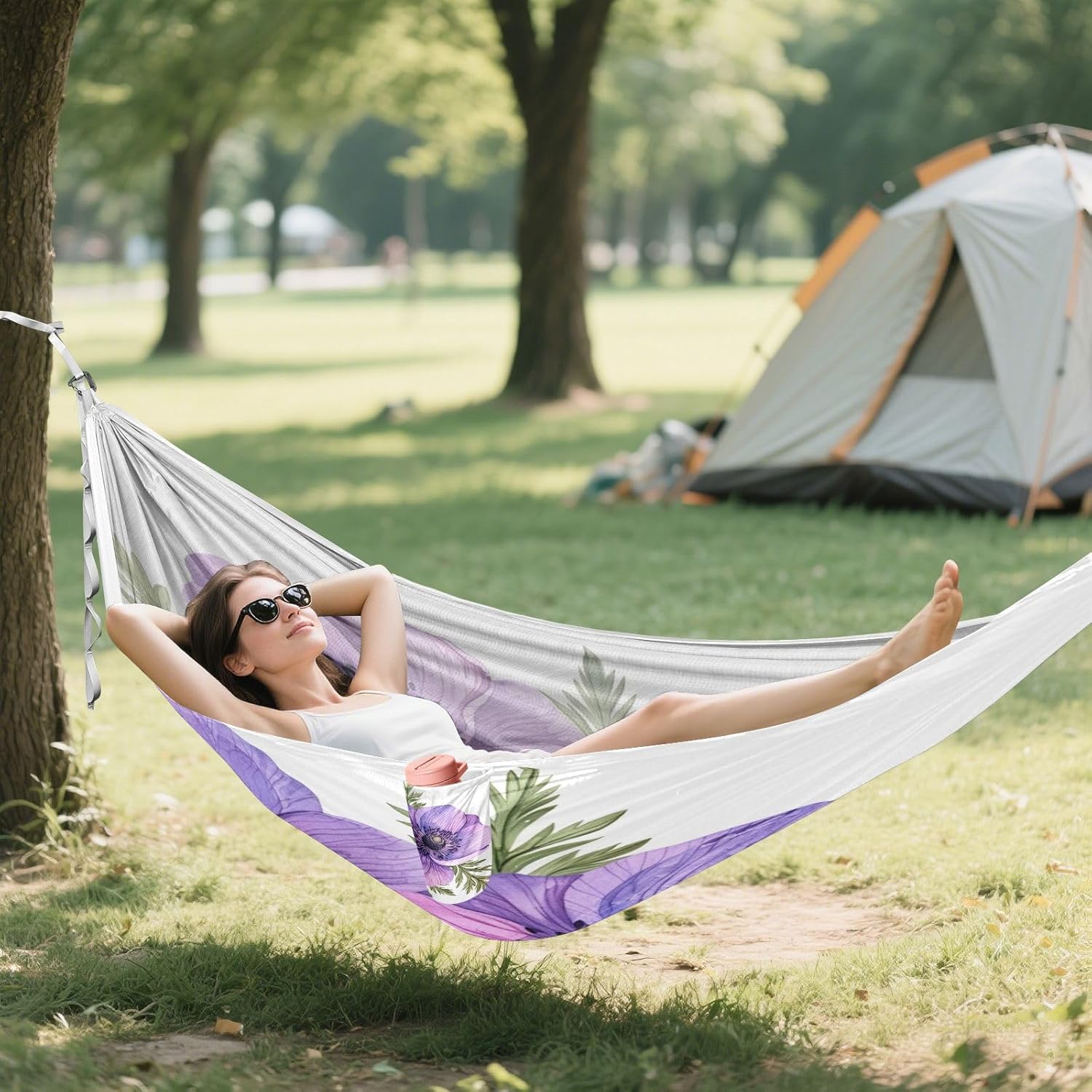 Reliable Outdoor Relaxation This practical hammock delivers comfort and convenience for outdoor enthusiasts using quality materials and thoughtful engineering. Technical Details Material: 100% polyester (210T taffeta body; 600D polyester straps) Hardware: Aluminum carabiners Load Capacity: 500 lbs (227 kg) Packed Size: Approx. 7 x 5 inches (18 x 13 cm) Durable Construction Reinforced triple-stitched seams at stress points Quick-drying material Practical Applications Camping and backpacking Hiking rest breaks Beach and park outings Family relaxation Travel and festivals Package Includes 1. Hammock 2. Straps (2m each) 3. Carabiners 4. Storage sack Designed for Easy Use Sets up in minutes without tools. The balanced design provides stable support, while the breathable fabric prevents overheating during extended use.