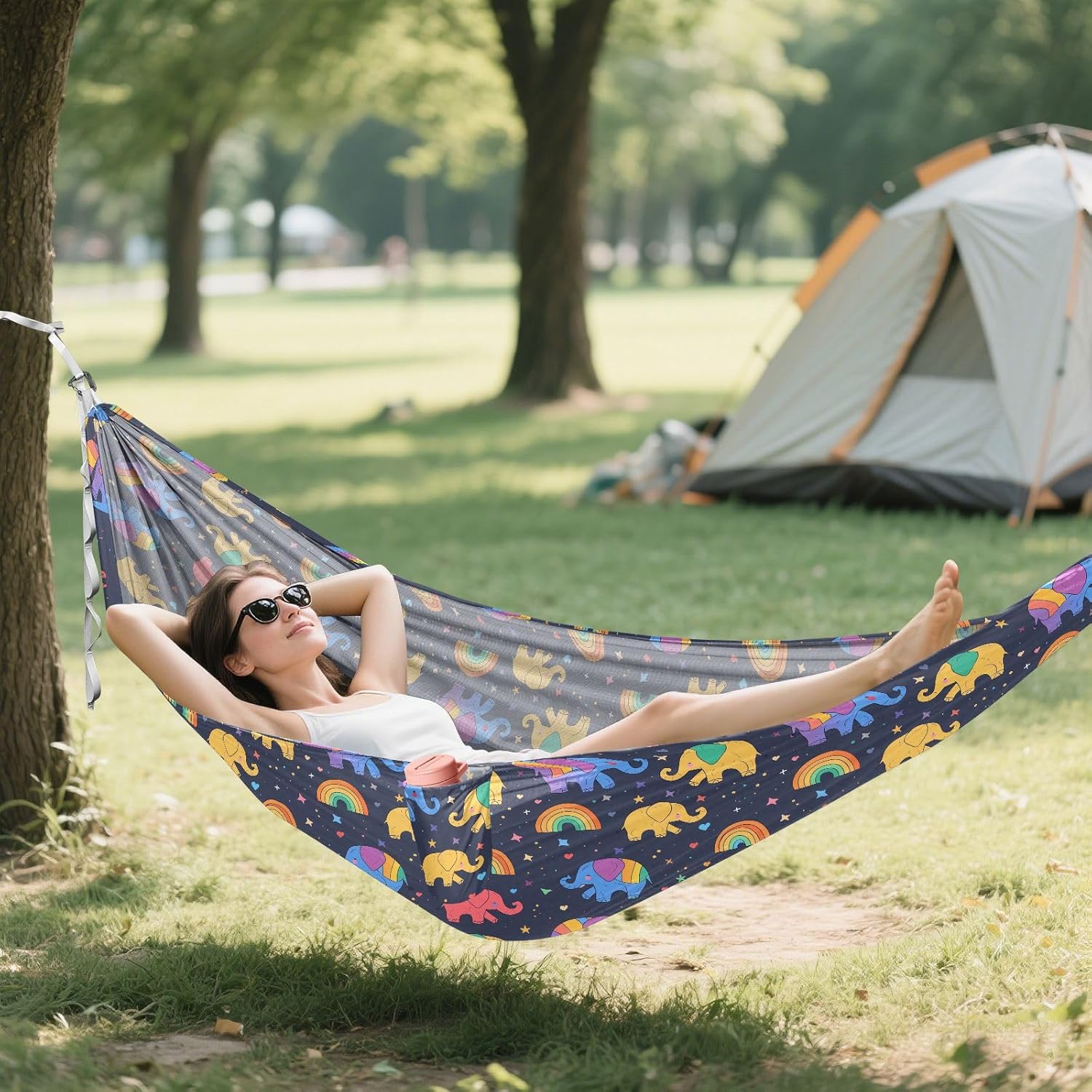 Reliable Outdoor Relaxation This practical hammock delivers comfort and convenience for outdoor enthusiasts using quality materials and thoughtful engineering. Technical Details Material: 100% polyester (210T taffeta body; 600D polyester straps) Hardware: Aluminum carabiners Load Capacity: 500 lbs (227 kg) Packed Size: Approx. 7 x 5 inches (18 x 13 cm) Durable Construction Reinforced triple-stitched seams at stress points Quick-drying material Practical Applications Camping and backpacking Hiking rest breaks Beach and park outings Family relaxation Travel and festivals Package Includes 1. Hammock 2. Straps (2m each) 3. Carabiners 4. Storage sack Designed for Easy Use Sets up in minutes without tools. The balanced design provides stable support, while the breathable fabric prevents overheating during extended use.