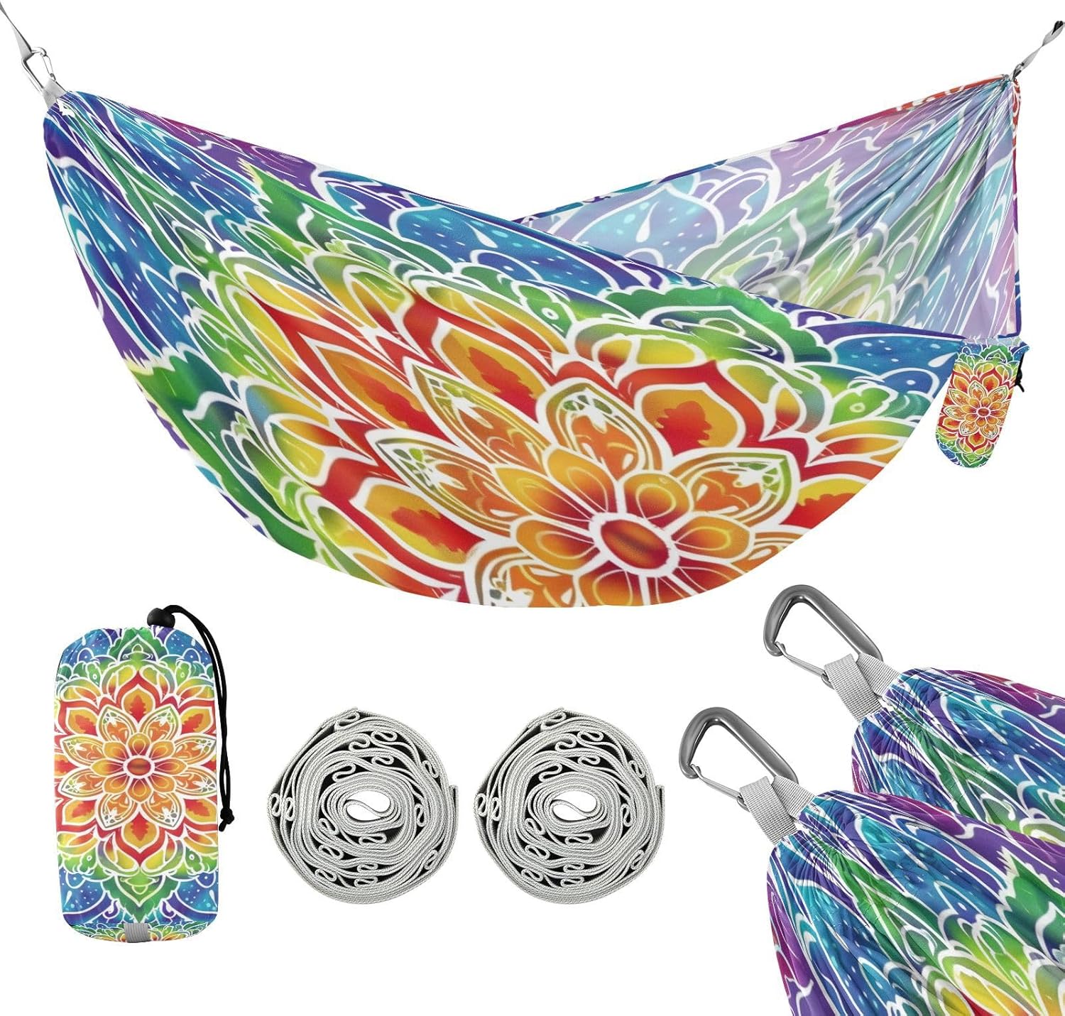Reliable Outdoor Relaxation This practical hammock delivers comfort and convenience for outdoor enthusiasts using quality materials and thoughtful engineering. Technical Details Material: 100% polyester (210T taffeta body; 600D polyester straps) Hardware: Aluminum carabiners Load Capacity: 500 lbs (227 kg) Packed Size: Approx. 7 x 5 inches (18 x 13 cm) Durable Construction Reinforced triple-stitched seams at stress points Quick-drying material Practical Applications Camping and backpacking Hiking rest breaks Beach and park outings Family relaxation Travel and festivals Package Includes 1. Hammock 2. Straps (2m each) 3. Carabiners 4. Storage sack Designed for Easy Use Sets up in minutes without tools. The balanced design provides stable support, while the breathable fabric prevents overheating during extended use.