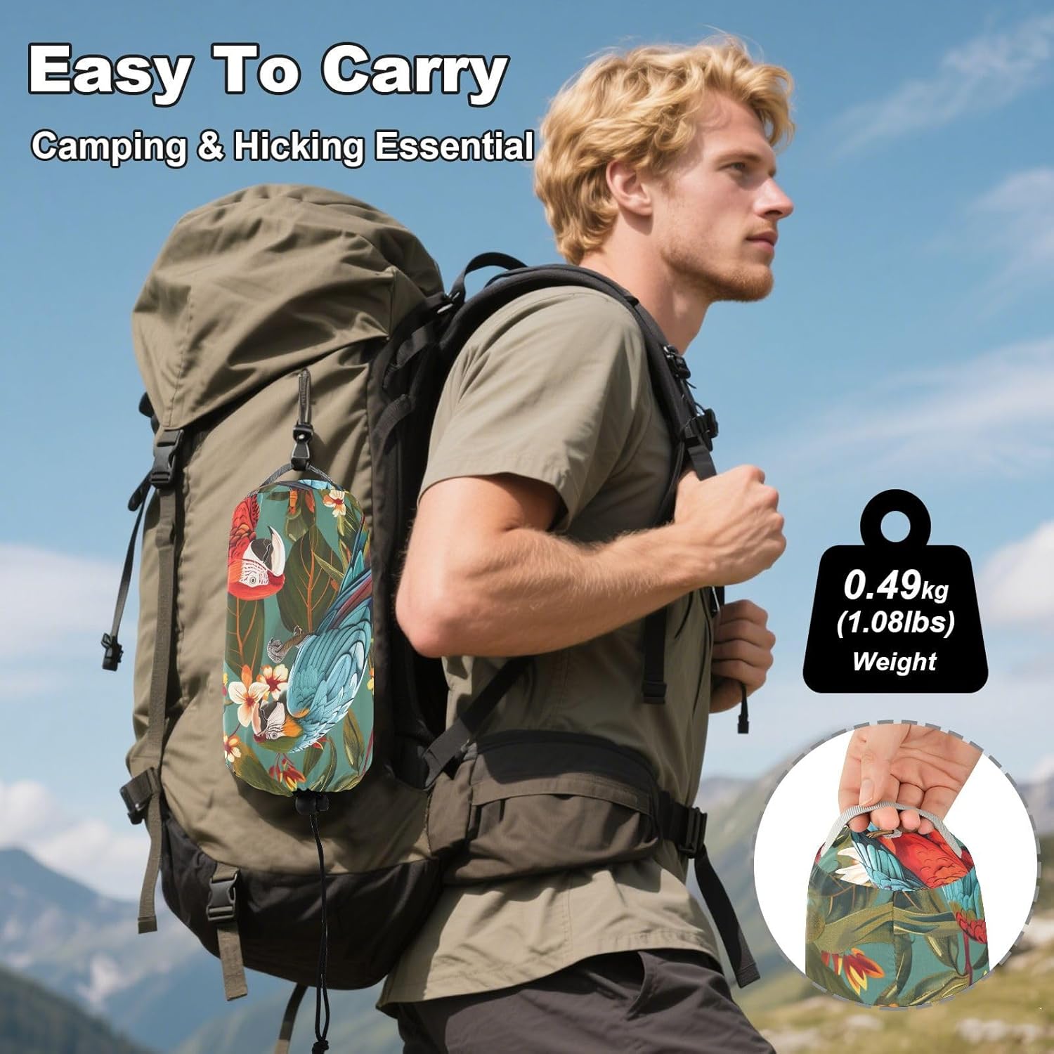 Reliable Outdoor Relaxation This practical hammock delivers comfort and convenience for outdoor enthusiasts using quality materials and thoughtful engineering. Technical Details Material: 100% polyester (210T taffeta body; 600D polyester straps) Hardware: Aluminum carabiners Load Capacity: 500 lbs (227 kg) Packed Size: Approx. 7 x 5 inches (18 x 13 cm) Durable Construction Reinforced triple-stitched seams at stress points Quick-drying material Practical Applications Camping and backpacking Hiking rest breaks Beach and park outings Family relaxation Travel and festivals Package Includes 1. Hammock 2. Straps (2m each) 3. Carabiners 4. Storage sack Designed for Easy Use Sets up in minutes without tools. The balanced design provides stable support, while the breathable fabric prevents overheating during extended use.