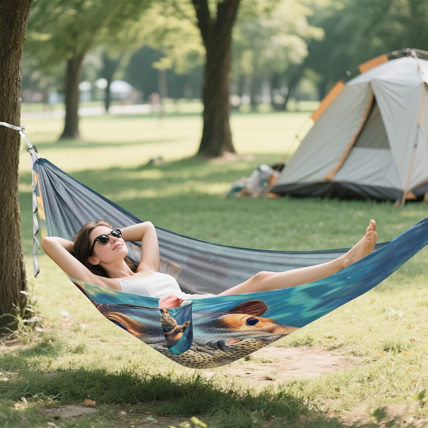 Reliable Outdoor Relaxation This practical hammock delivers comfort and convenience for outdoor enthusiasts using quality materials and thoughtful engineering. Technical Details Material: 100% polyester (210T taffeta body; 600D polyester straps) Hardware: Aluminum carabiners Load Capacity: 500 lbs (227 kg) Packed Size: Approx. 7 x 5 inches (18 x 13 cm) Durable Construction Reinforced triple-stitched seams at stress points Quick-drying material Practical Applications Camping and backpacking Hiking rest breaks Beach and park outings Family relaxation Travel and festivals Package Includes 1. Hammock 2. Straps (2m each) 3. Carabiners 4. Storage sack Designed for Easy Use Sets up in minutes without tools. The balanced design provides stable support, while the breathable fabric prevents overheating during extended use.
