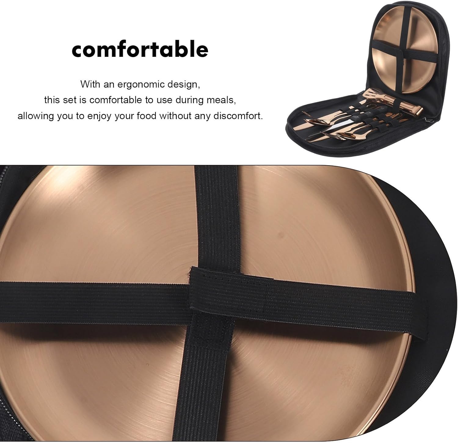 Package Include 2 x cutters 2 x forks 2 x spoons 1 x saw cutter 1 x tong 2 x plates Features -Product Info:Outdoor tableware set -Color:Rosy -Size:20.80X1.80X1.50cm/8.17X0.71X0.59in (Saw Cutter) -Size:18.80X7.00X3.80cm/7.39X2.75X1.49in (Tong) -Size:22.80X2.00X0.20cm/8.96X0.79X0.08in (Cutter) -Size:20.50X2.50X1.00cm/8.06X0.98X0.39in (Fork) -Size:20.30X4.40X1.00cm/7.98X1.73X0.39in (Spoon) -Size:20.00X20.00X2.00cm/7.86X7.86X0.79in (Plate) -Material:Stainless steel and cloth -The versatile set is suitable for a wide range of outdoor activities. Provides you a good hand feeling while you are enjoying your meal Camping Must Haves. -The color adds a touch of elegance to your outdoor dining experience. -The ergonomic design of the set comfortable use during meals Camp Stainless Steel Tableware. -The convenient carrying case makes it easy to transport and store the set Stainless Steel Travel Utensil. -The stainless steel construction that the set can be used for a long time Portable Tableware.Goods Descriptionstainless steel outdoor tableware This versatile set is perfect for a variety of outdoor activities.Stainless Steel Camp Utensils Whether you're camping, hiking, or having a picnic, this set has you covered.Stainless Steel Travel Utensil Plus, the set is easy to clean, can spend more time enjoying your outdoor adventure.Portable Camp Utensils The cutlery is durable and can withstand the rigors of outdoor use, while the carrying case makes it easy to transport and store