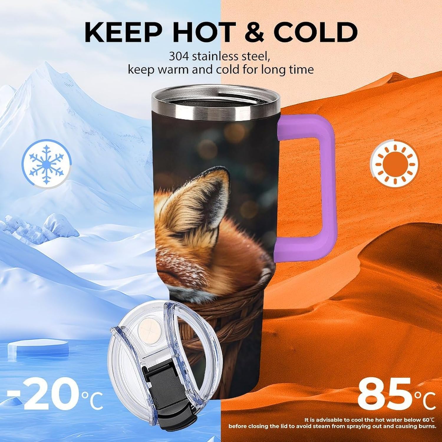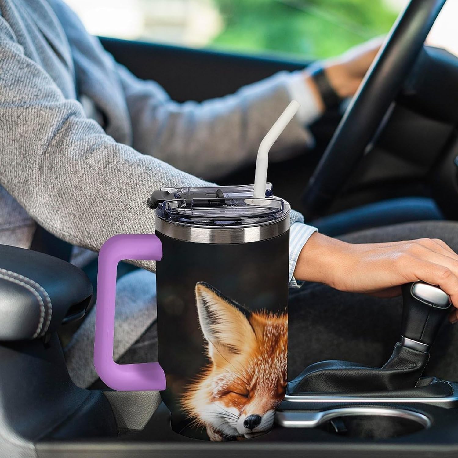 The simple tumbler is double walled and vacuum insulated to keep your drink hot or cold for hours.The cup is outfitted with an ergonomic handle, that is aesthetically designed for comfort. It comes with a straw lid and a straw so you can enjoy your favorite beverage on the go.The bottom of the cup is conveniently sized to fit car cup holders for easy portability. Fill your insulated tumbler with coffee, sweet tea, ice water, milkshakes, juice, cocktail, lemonade and more!If you are looking for the perfect birthday or holiday gift, don't miss this one. It can be a surprise gift for women, friends, family, couples.If you have any questions during your purchase or gifting process, please reach out to us—we're happy to help!