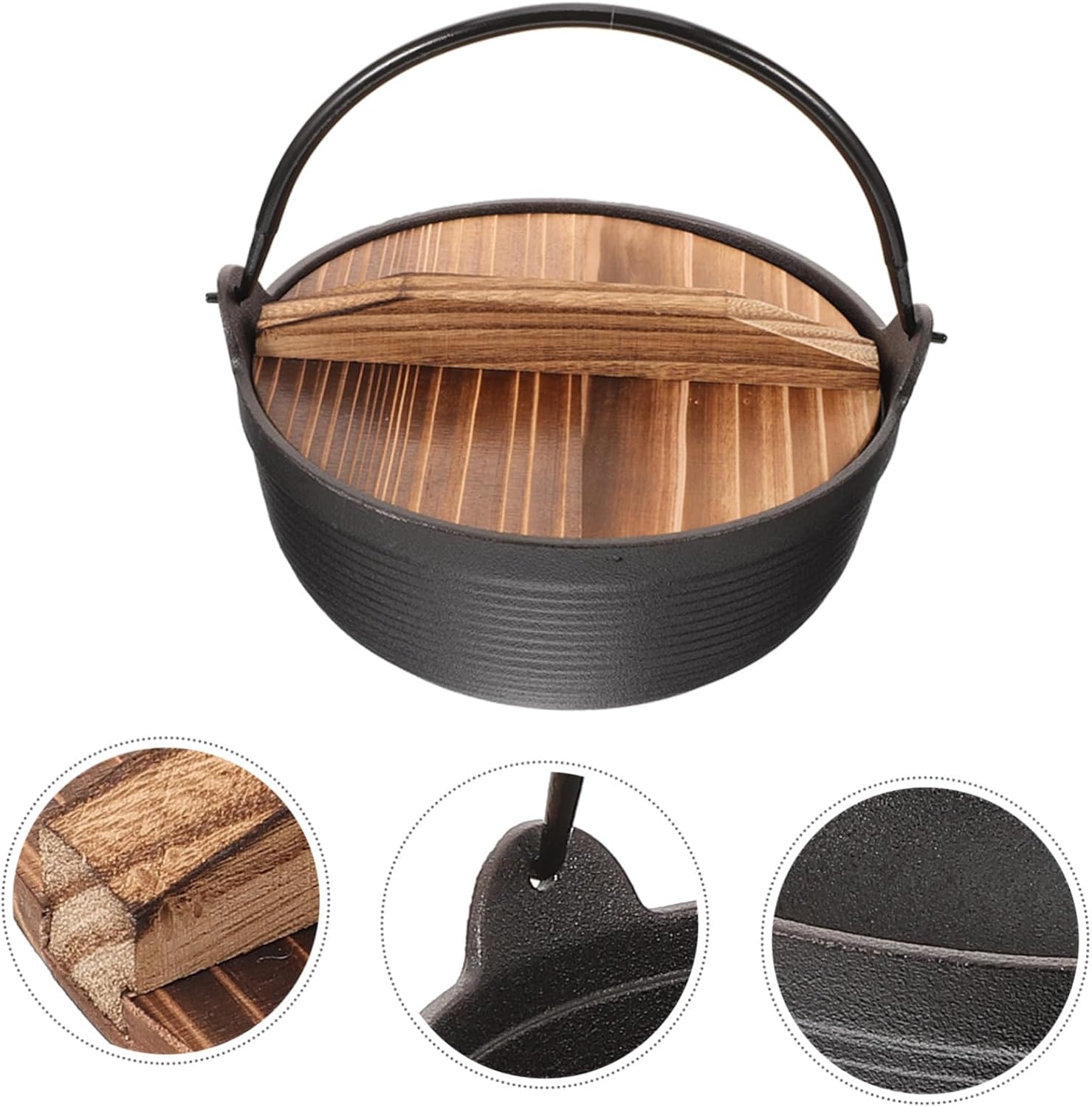 Package Include 1 x pot wit lid Features -Size:19.50X19.50X10.00cm/7.66X7.66X3.93in japanese style hot pot -Color:As Shown sukiyaki nabemono -Material:Cast iron, iron soup pot -This type of pot has uniform heat treatment and temperature resistance. You can use it for a long time. high temperature pot -The use of wood and cast iron materials ensures uniform heat distribution and quick and convenient heating of food cooking boiler. -The surface of this iron pan is smooth, easy to clean and easy to take care of traditional hot pot. -It can be used directly on an open flame, with fast heat conduction, uniform heating, and very strong lid. -Our saucepans are in workmanship, wear resistant pot, and of quality cast iron stock pot.Goods Descriptionbaskets Do you want a hanging iron pot for home use? If so, choose our products! Use strong and materials, easy to store and use, and can be used at home and outdoors.japanese cookware The cast iron material .cooking soup pot You can also take it with you when you go camping, which is very convenient