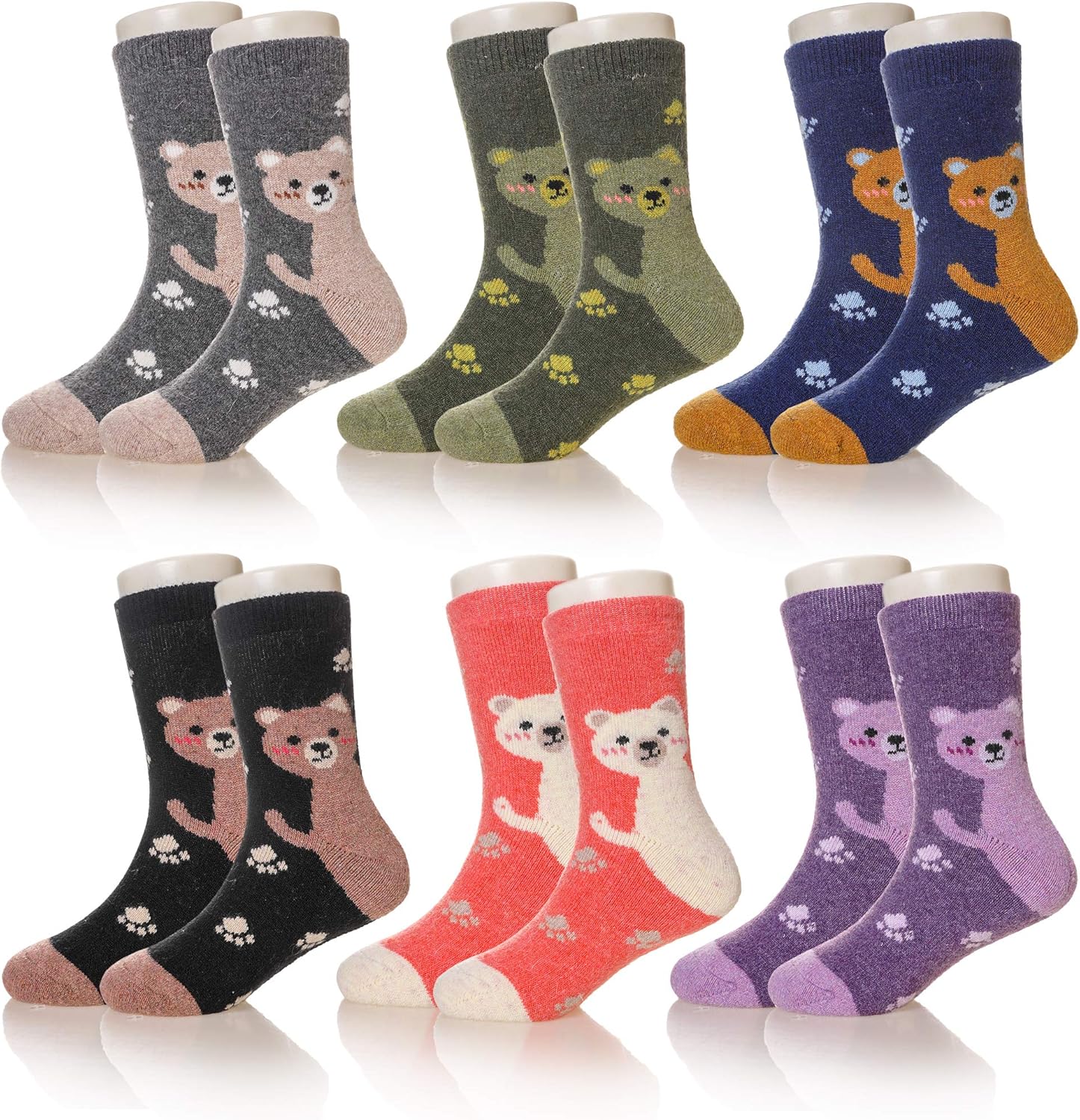 DoSmart Children's Winter Warm Wool Solid Color Socks Kids Boy Girls Hiking Thermal Boot Crew Socks 6 Pairs
