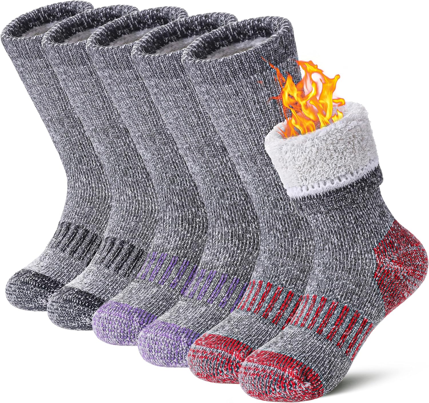 • SUPER THICK LINED KID WOOL SOCKS - Kids merino wool hiking socks have been designed to match for any occasion whether you’re looking for warm socks you can sleep in cold conditions or thermal socks can wear in hiking, running, hunting, riding bikes, mountain climbing, skiing, snowboarding, gym class or playing outside in the snow. Your child will stay warm and cozy, no matter how cold it gets outside and more insulated than regular wool socks.