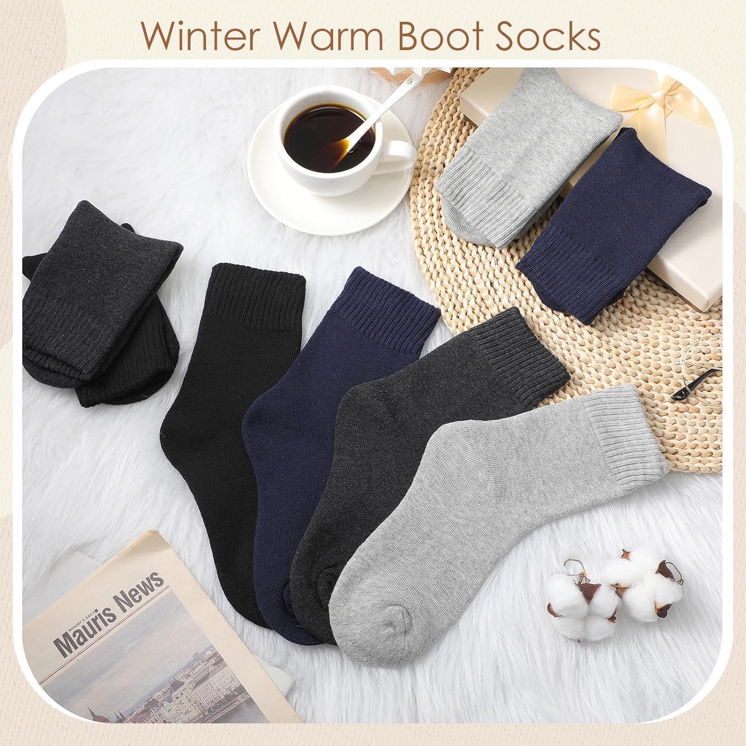 Features: Soft and comfortable: These men wool socks are very soft and comfortable, the thick inner design can keep your feet warm and the soft fabric will keep your feet feel comfortable all the day. Keep warm in the cold winter: Our mens wool socks are made of thicker material for breathability and enhanced thermal. Each pair of comfortable wool socks acts like a furnace in the cold, keeping your feet toasty and warm all winter long. Specifications: Material: wool Color: black, dark gray, light gray, navy blue Size: 3-11 inch Package includes: 72 x Wool socks bulk for men Notes: Manual measurement, please allow slight errors on size. The color may exist a slight difference due to different screen displays