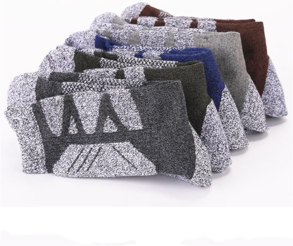 High top thickened sports socks.3D strong waistband.Fit to the foot shape and provide full foot protection.It is not easy to loosen or shift during exercise.Tight stitching for better foot fit.Product category: Sports socksMain fabric composition: cotton, polyester fiber, spandexApplicable age group: 18-40 years old (size 35-39)Color: Multi-coloredSize: Unified sizeSpecification: 5 pairs of socks (excluding other display items)Kind reminder:Due to differences in monitors, colors may vary. Please refer to the actual product.Sports Socks With Thickened Towel Soles, Hiking Socks, Sweat Absorbing Sports Running Socks