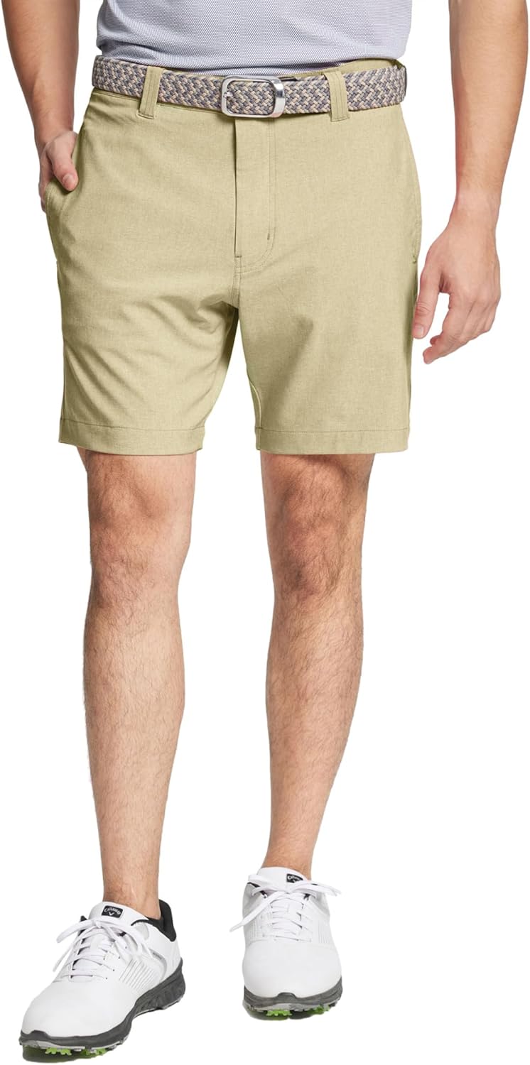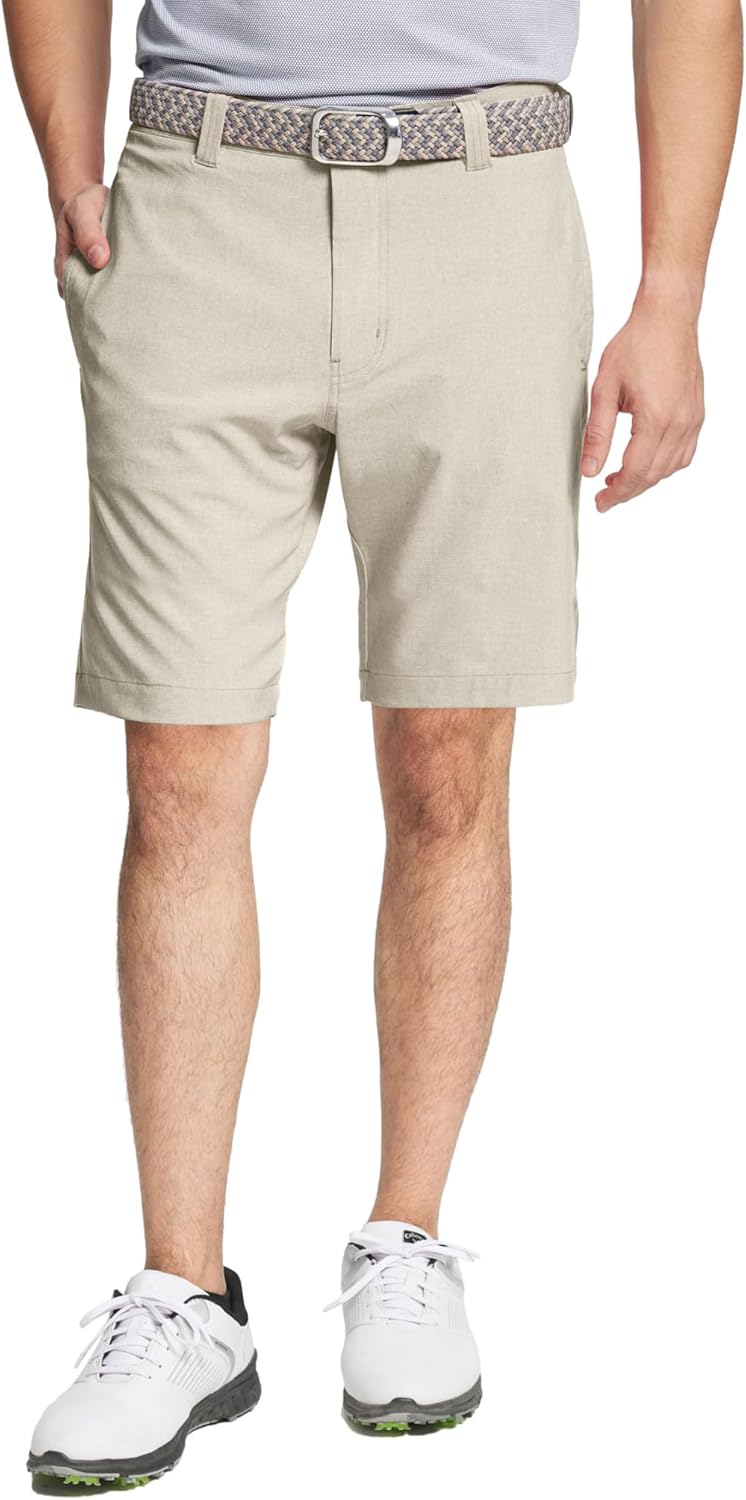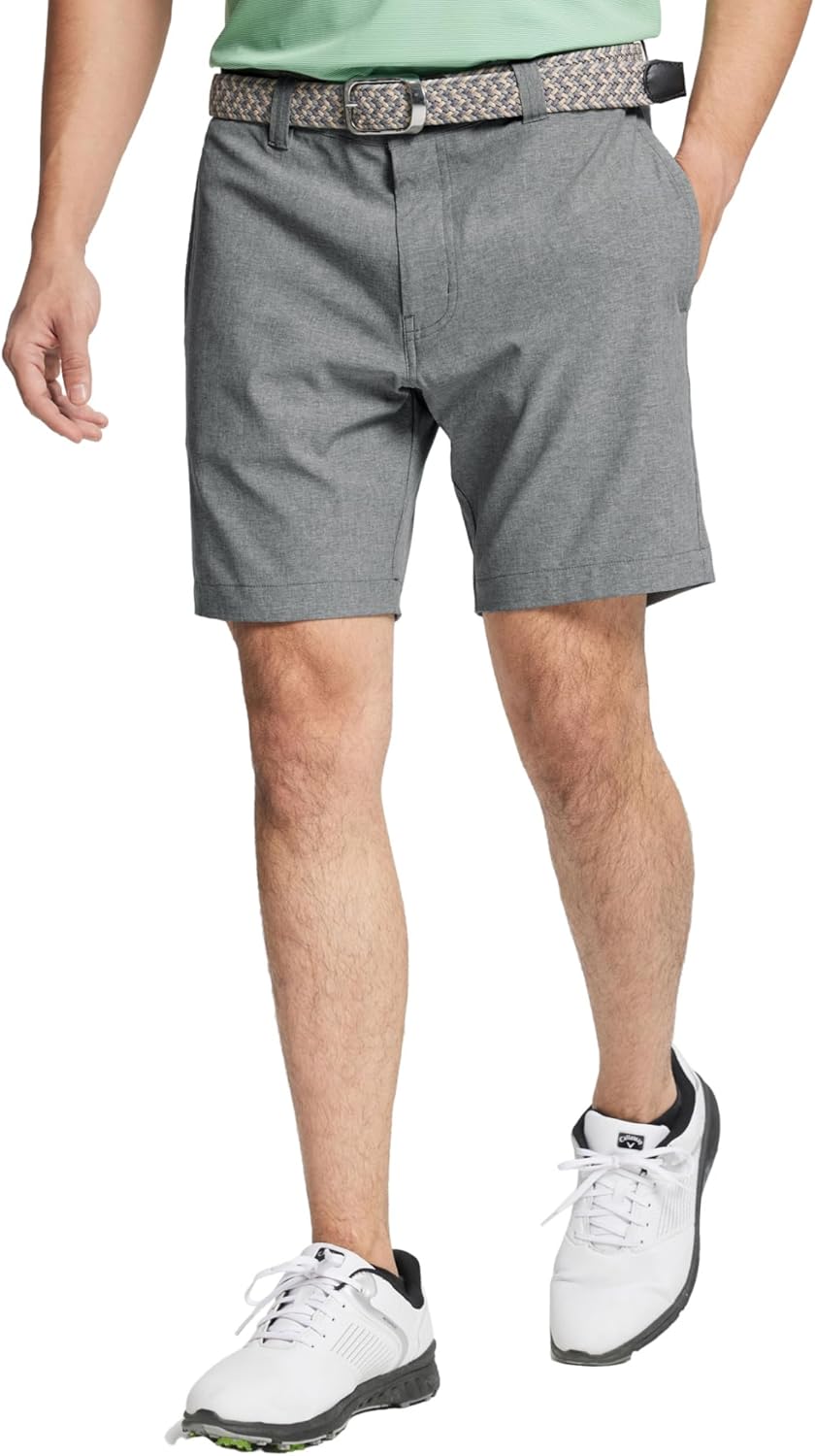 Introducing the most comfortable pair of heather mens golf shorts you will ever own. Our heather golf shorts are constructed from our exclusive melange performance fabrication that delivers integrated function of lightweight, easy care, UPF30+, skin-friendly, breathable and quick dry, that keep you cool and comfortable.