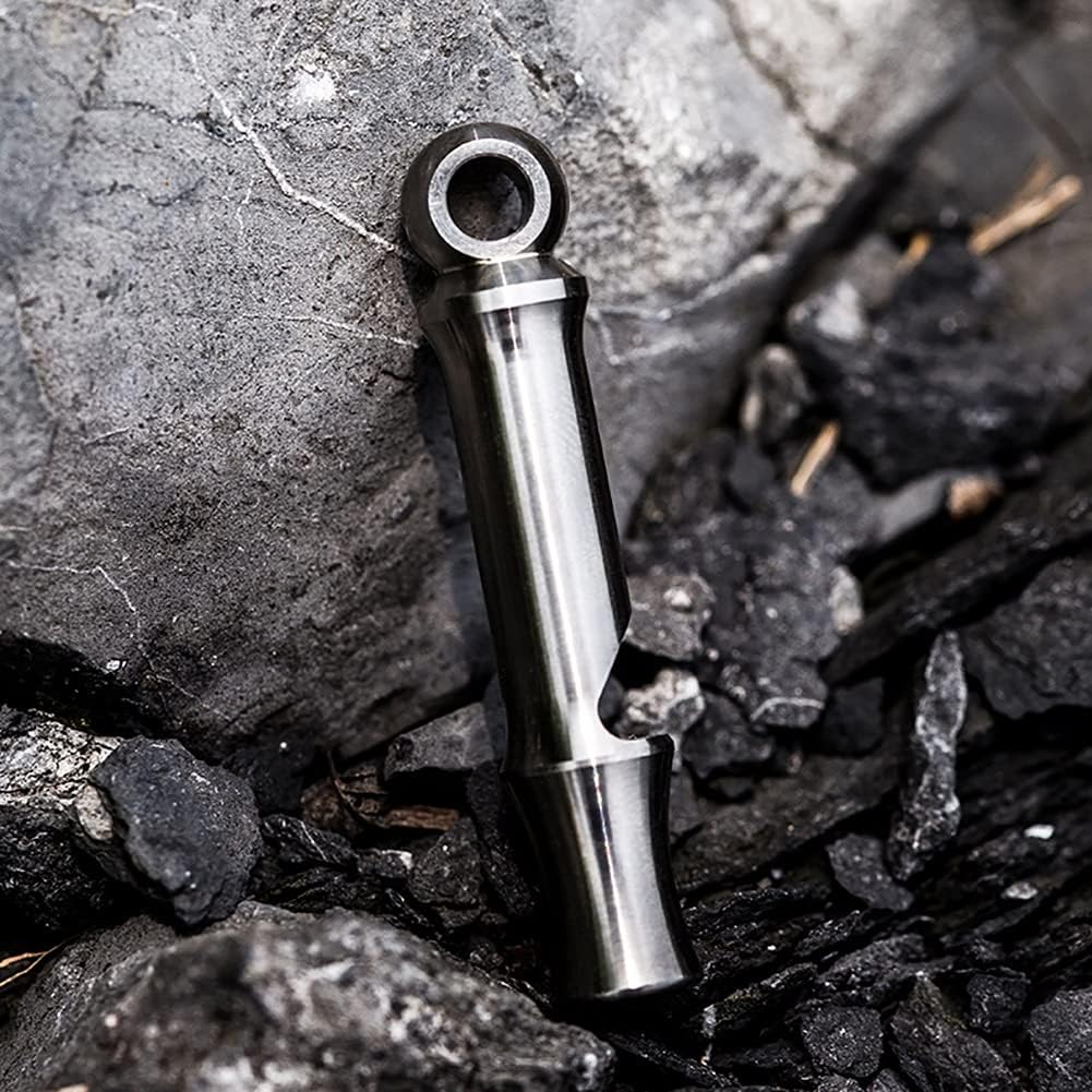 It is very suitable for outdoor communication in survival situations. You can hang it on the key chain or hang out. Waterproof and can be used in dry conditions. Lifetime warranty, providing a thick emergency whistle for your life-saving kit.Material: Titanium alloySize: 4.8*0.9cmVolume: 100dbWeight: 5.7g