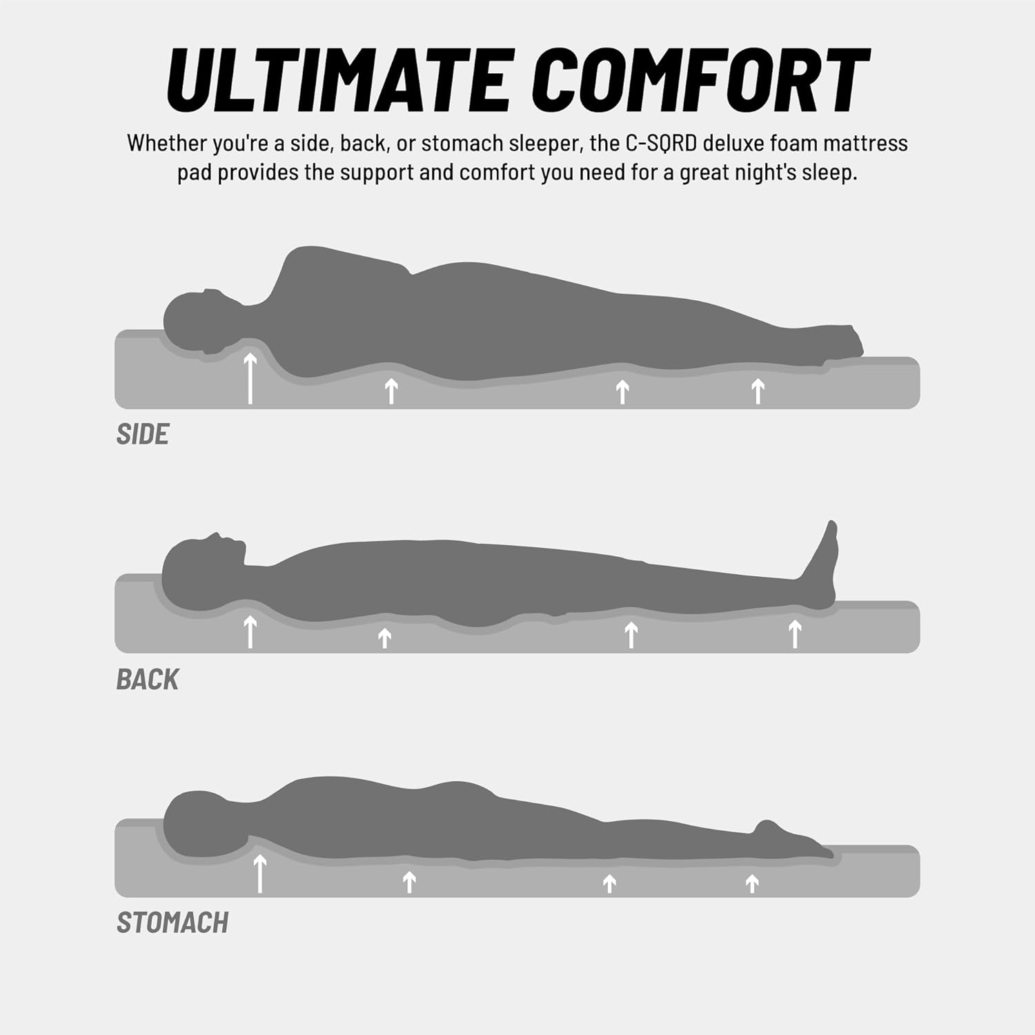 The C-SQRD Large Foam Pad is a 32" wide, 3-inch thick camping essential designed to elevate outdoor comfort. Whether you’re embarking on a camping adventure, setting up for a road trip, or preparing for guests, this versatile sleeping pad offers plush support and durability in any setting. Crafted from premium closed-cell foam, it delivers consistent comfort and support, ideal for campers, tall travelers, and those needing an extra bed. This deluxe sleeping pad features a waterproof cover with a tough base that guards against ground moisture, stains, and spills, keeping you dry and comfortable through the night. Tailored with extra length, the pad fits individuals over 6 feet, ensuring they have ample space to relax. When it’s time to pack up, the pad rolls up easily, secured by durable nylon straps and G-hooks, and fits neatly into an oversized waterproof carry case. From camping essentials to home needs, the C-SQRD sleeping pad combines comfort and convenience. It’s your perfect companion for memorable nights outdoors and restful sleep wherever you go.