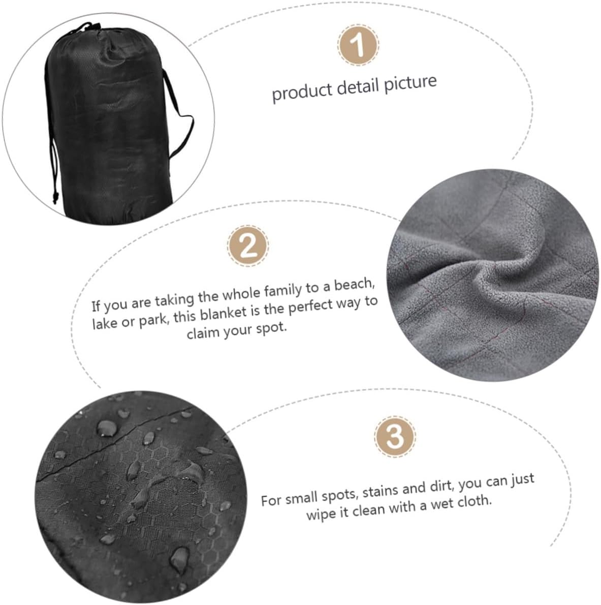 Package List 1 x camping blanket 1 x storage bag Characteristics - Size: 200.00X140.00X1.00cm/78.60X55.02X0.39ch. -Product Info:Warm fleece blanket - Material: Polyester and fleece. - Easy to be folded and packed back into the attached storage blanket camping. - Made of polyester and fleece, lightweight and comfortable picnic blanket. - Perfect for chilly days at the park, windy stadiums, and at travel picnic blanket. - Keeping warm a in the cold indoors and windy outdoors camping blanket. - It's so small and compact it will not take much space. Meet all your requirements camping blankets for cold weather.Goods Descriptioncompact picnic blanket It will soon become your essential item for anything from weekend to adventurous backpacking trips with its rugged outer shell and interior.camping blankets for cold weather This item is a camping blanket, durable yet ultra-cozy at the same time