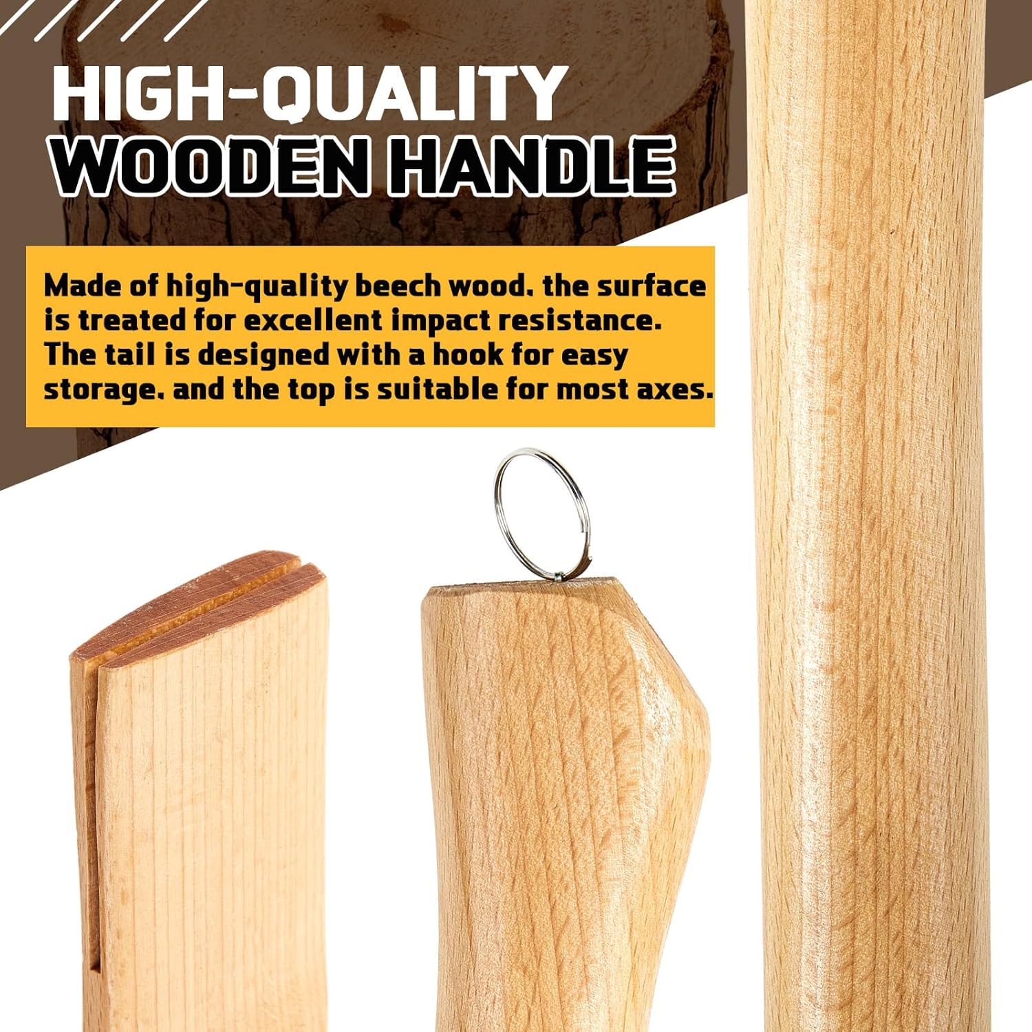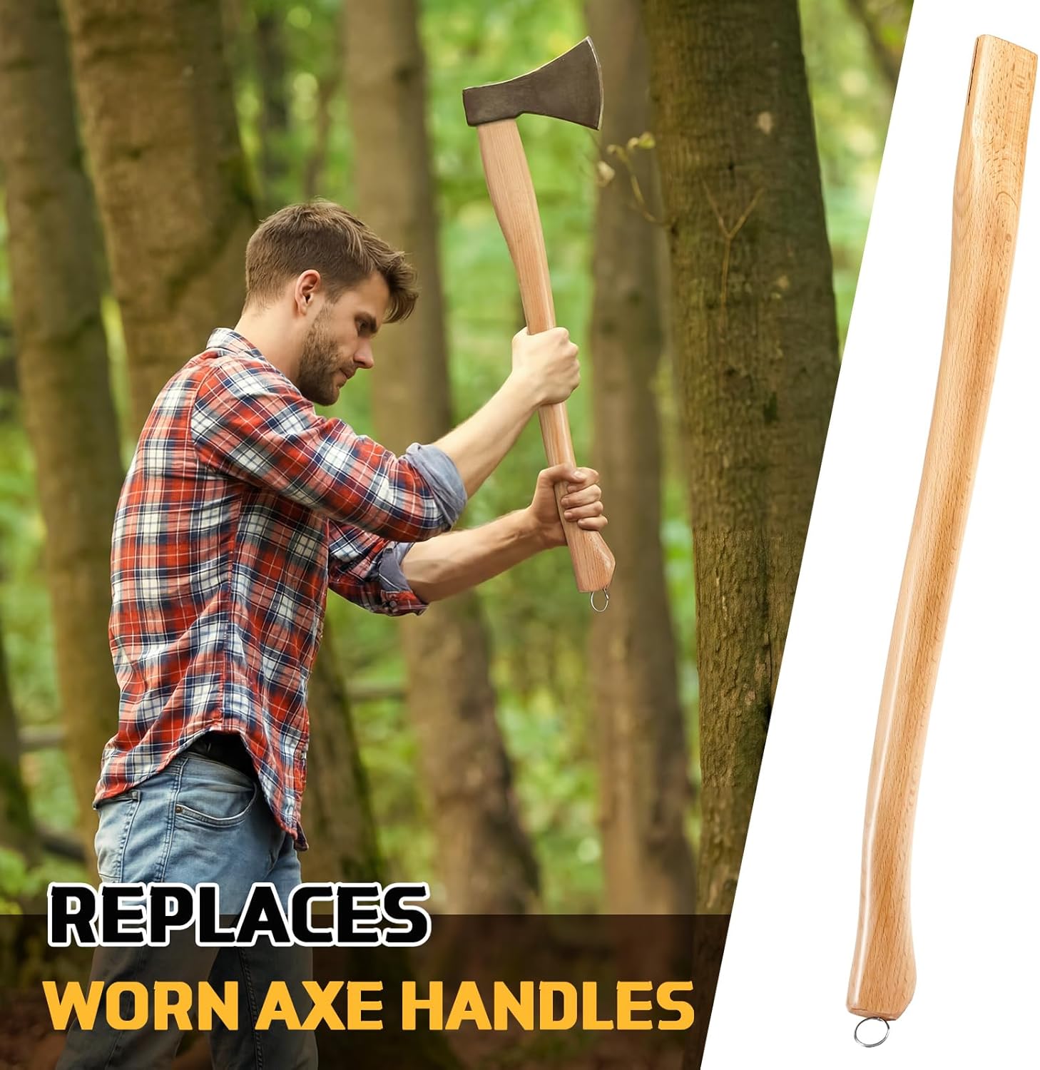 Features: Each pack includes 2 single bit axe handles, essential for safety. Specifications: Material: beech wood Color: classic color Size: about 28 inches/ 70 cm in total length Package includes: 2 x Single bit axe handles Notes: Manual measurement, please allow slight errors on size. The color may exist a slight difference due to different screen displays.
