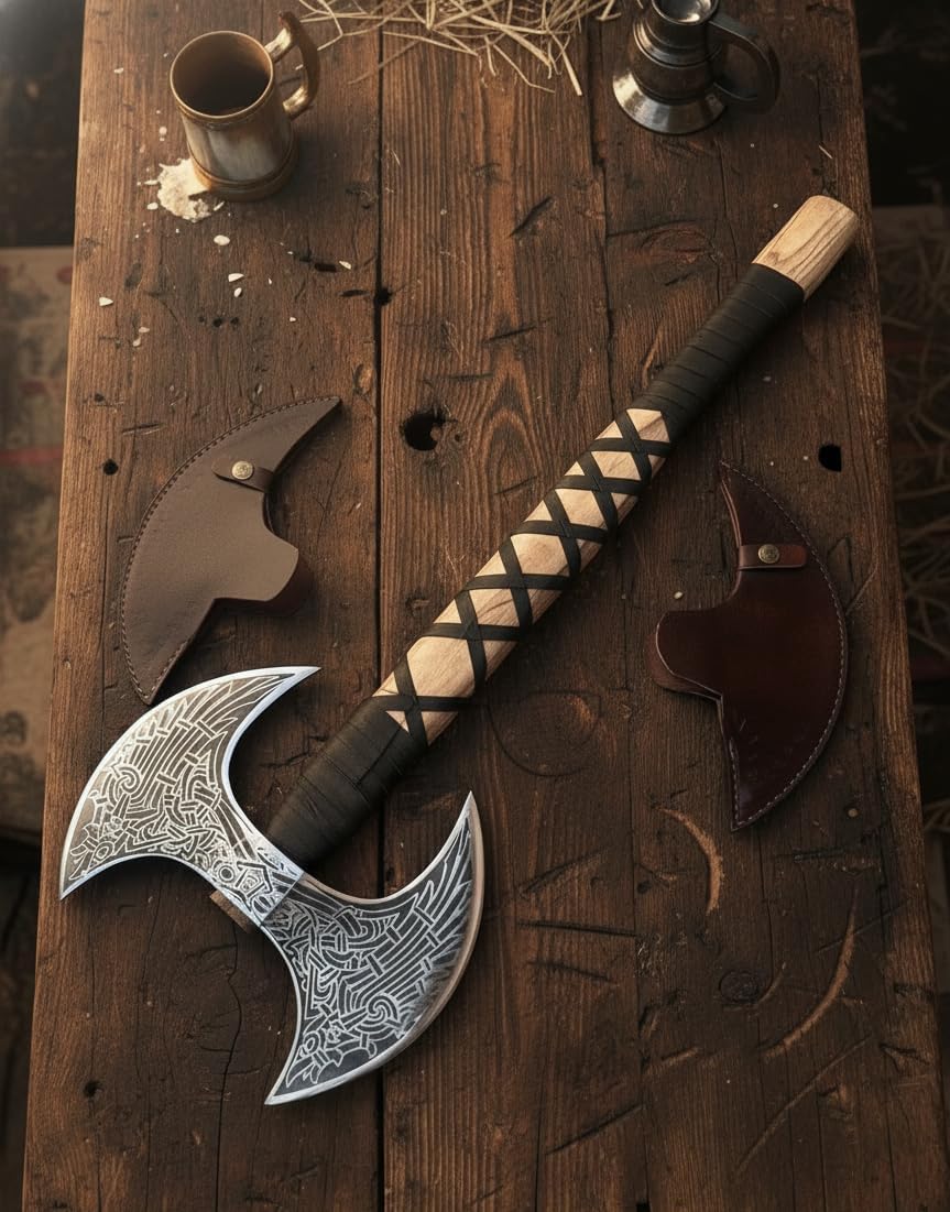 Axe of Viking store: ✔️OverallLength: 29 inches ✔️Blade width: 11.2 inches ✔️Cutting Edge: 9 inches ✔️Blade Material: Stainless Steel ✔️Handle: Ash wood