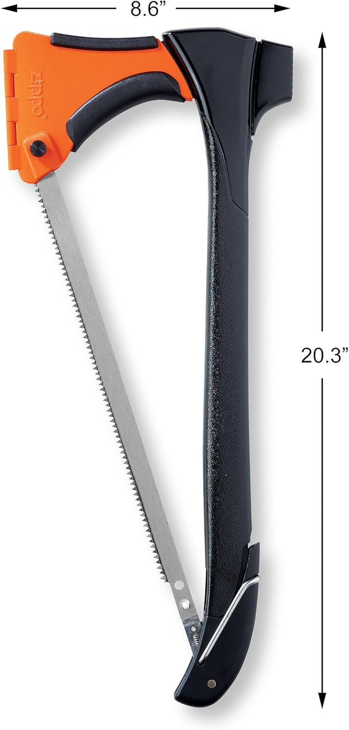 44032 Features: -It chops, saws, pounds and pulls. -Steel hatchet has 5" blade. -Made in the USA. -15" Bow saw cuts oak diameter: 4". Product Type: -Splitting Axe. Handle: -Rubber. Country of Manufacture: -United States. Generic Specifications: -4 In 1 woodsman. Dimensions: Overall Length - Top to Bottom: -9". Overall Width - Side to Side: -21". Overall Depth - Front to Back: -2". Blade Length: -5". Overall Product Weight: -3 lbs.