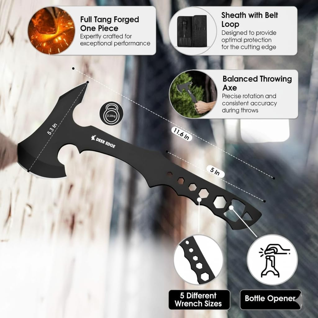 Upgrade your target-throwing experience with this professional 3-piece throwing axe set, designed for precision, durability, and high-performance outdoor fun. Each axe is crafted from full-tang stainless steel, giving you the strength and balance needed for consistent, accurate throws. The sleek, aerodynamic profile and sharpened dual-edge blades help the axes stick to wooden targets with ease, making them perfect for competitions, backyard practice, or recreational throwing with friends. The skeleton-cut handle design reduces weight while providing a confident grip for controlled release. Whether you’re an outdoor enthusiast, a beginner learning the basics, or a skilled thrower refining your technique, this throwing axe set delivers reliable performance every time. A great addition to camping gear, survival kits, or as a standout gift for anyone who enjoys tactical tools and target sports.