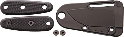6 1/4" overall. Textured black powder coated 1095 high carbon steel construction with 2 5/8" blade. Full tang. Skeletonized handle with carabineer hole pommel. Black molded Kydex sheath with large lanyard hole and lashing holes. Complete kit includes: optional black Micarta handle scales, Paracord, cord lock, large split ring, small split ring, Ferro fire starting rod, emergency whistle, plastic snap hook and clip plate kit. Bulk packed.