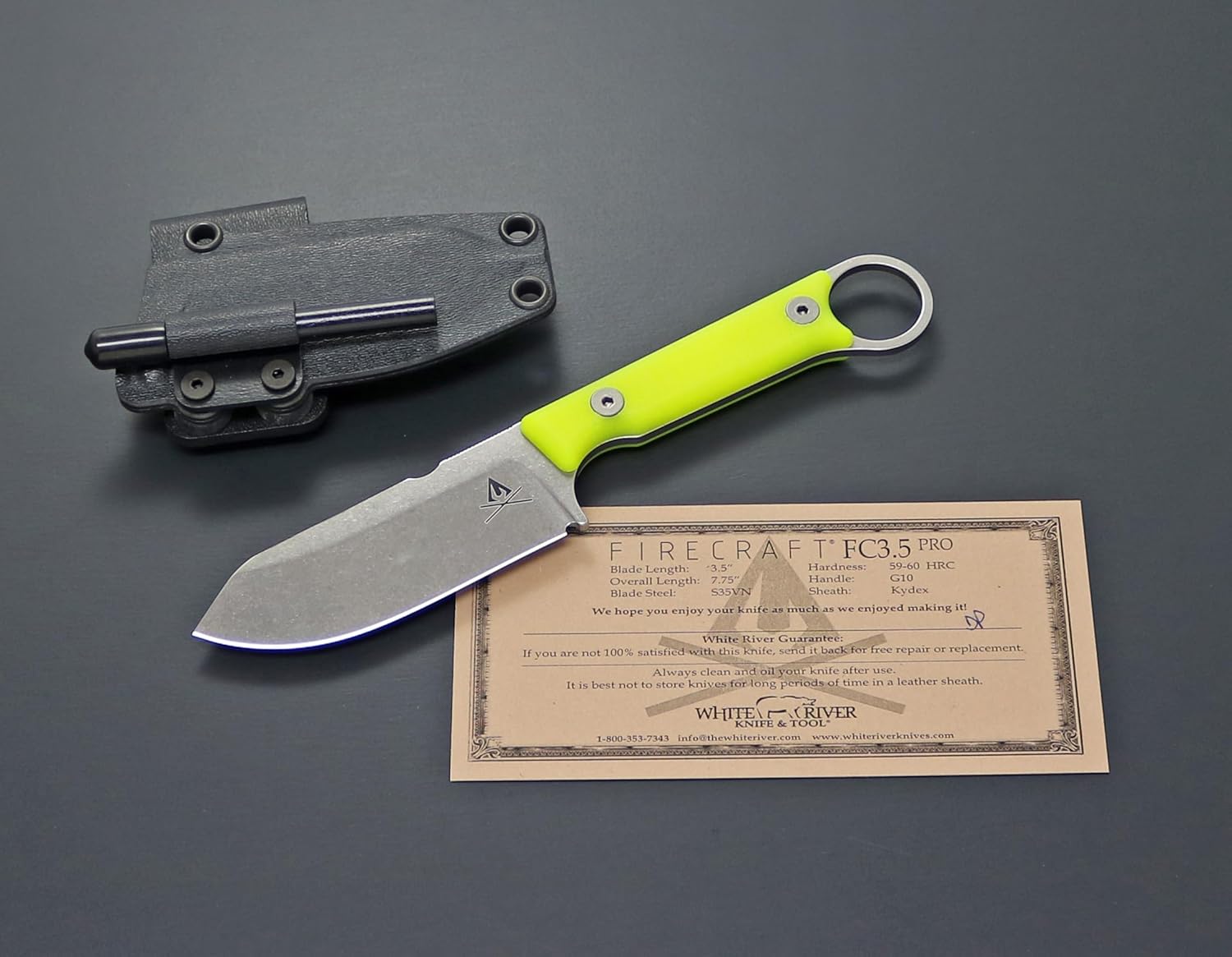 Designed for heavy use in real survival situations, the White River Knives Firecraft 3.5 Pro Fixed Blade Knife stands alone or makes an excellent companion knife to the larger knives in the series. It's compact enough to allow for every day carry and tough enough for camping, hunting, or backpacking. Atop the blade is a notch for efficient striking of a ferro rod, and one is included with each knife. The smallest of the FIRECRAFT series, the FC3.5 Pro has pre-fastened, removable bolt-on textured G10 handle scales to allow for a rugged grip and versatility. Each FIRECRAFT knife is outfitted with a rugged Kydex sheath system designed to be mounted in a variety of positions. Carried vertically, horizontally, or attached to other equipment, the sheath system offers you options.