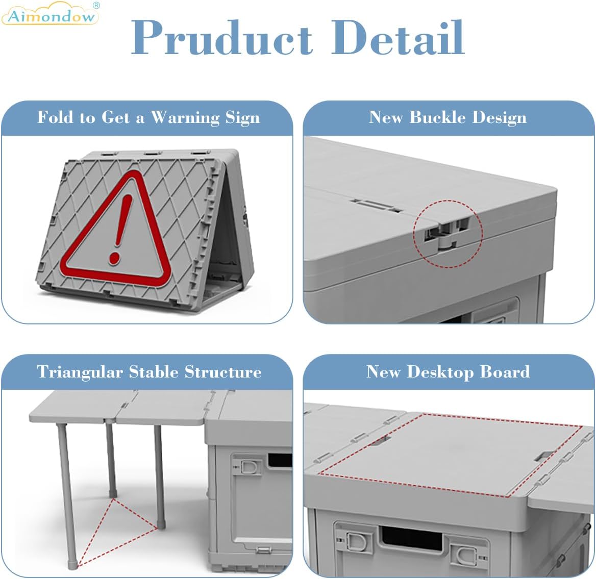 Folding Storage Box with Table, 3 in 1 Camping Collapsible Bins with Parking Warning Sign, Multifunctional Foldable Container, Outdoor Storage Bin for Picnic, Home, Office, Car