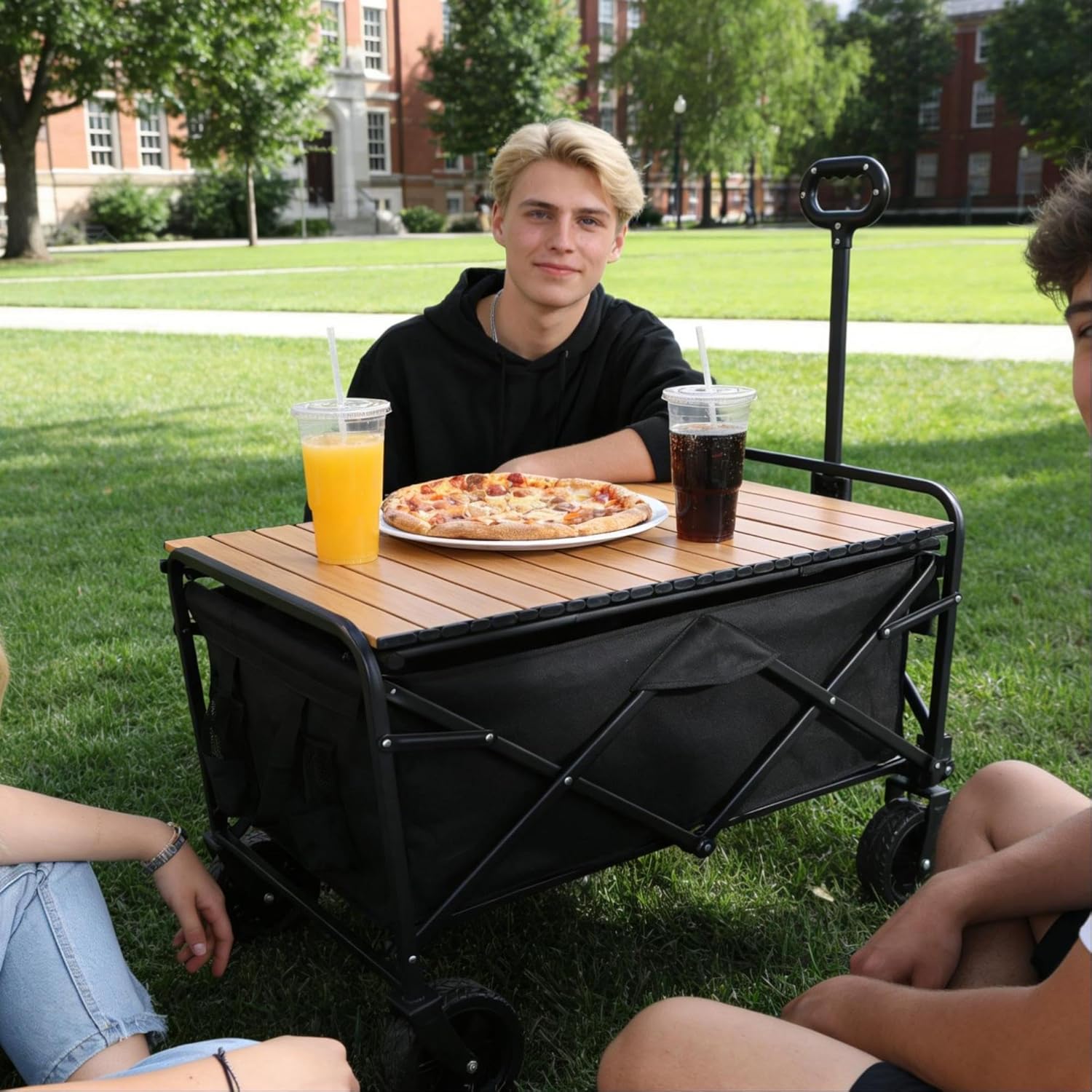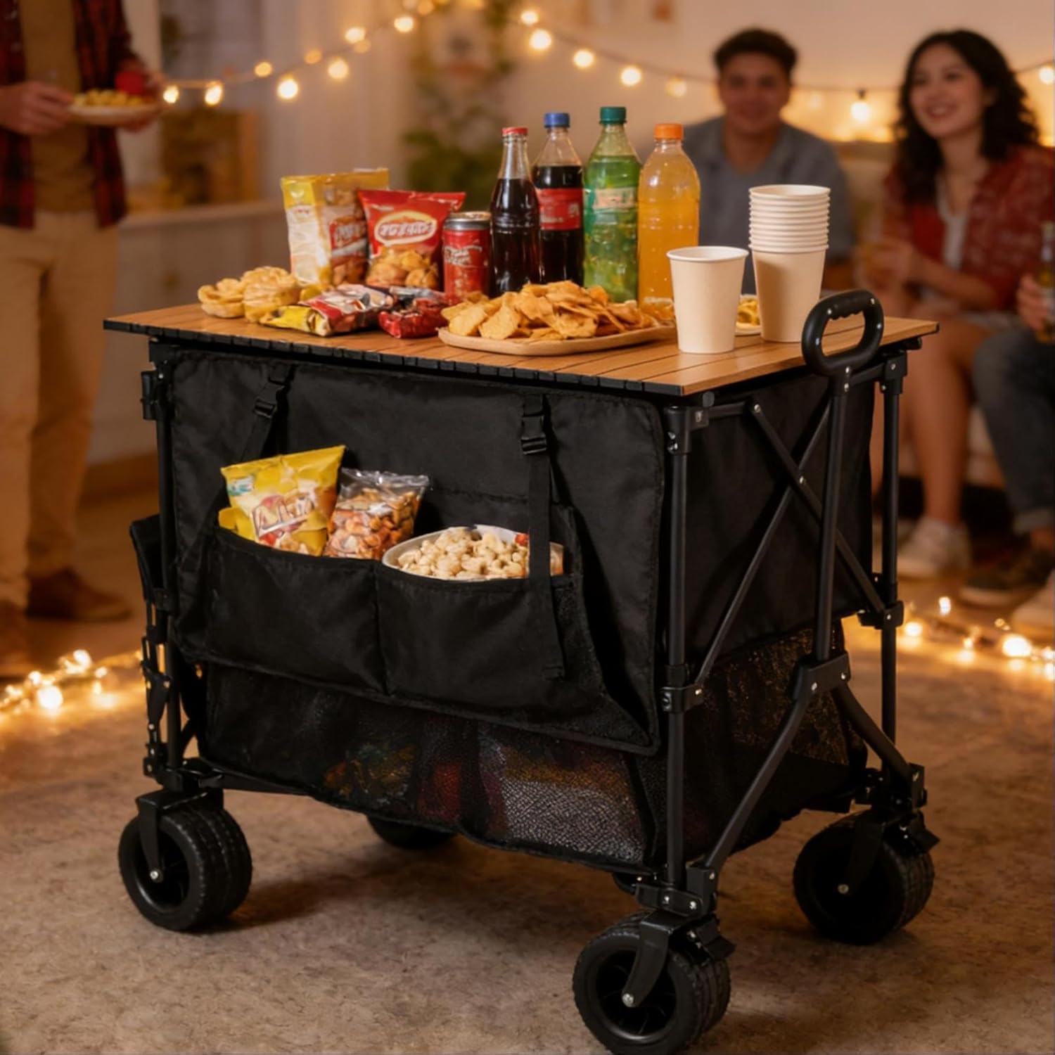 UNLOCK UNMATCHED CONVENIENCE & UTILITY · An Instant Outdoor Kitchen: Create a stable, elevated platform for your camp stove, creating a safe and efficient cooking area away from the ground. · The Perfect Dining Solution: No more messy, uncomfortable laps. Gather around your wagon for a proper meal, card games, or as a central hub for your group. · Maximize Your Tailgate Game: Be the hero of the parking lot. Use the table as a dedicated serving station for food and drinks, keeping your main wagon free for seating or other gear. · A Clean, Organized Command Center: Keep phones, keys, sunscreen, and other small items off the ground and in one clean, dry, and easy-to-find place. ENGINEERED FOR STRENGTH & SIMPLICITY · No Wobbles, No Spills: The robust locking leg mechanism and rigid frame ensure a shake-free surface, even on slightly uneven ground. Your expensive grill and full drinks stay perfectly secure. · Universal Compatibility: Designed specifically to pair seamlessly with most popular 40-inch and similar-sized heavy-duty folding wagons. It's the missing piece that completes your setup · Built to Last: Crafted from high-grade, rust-resistant aluminum or steel and a textured, waterproof HDPE surface, this table is built to withstand the rigors of outdoor use and last for countless adventures.