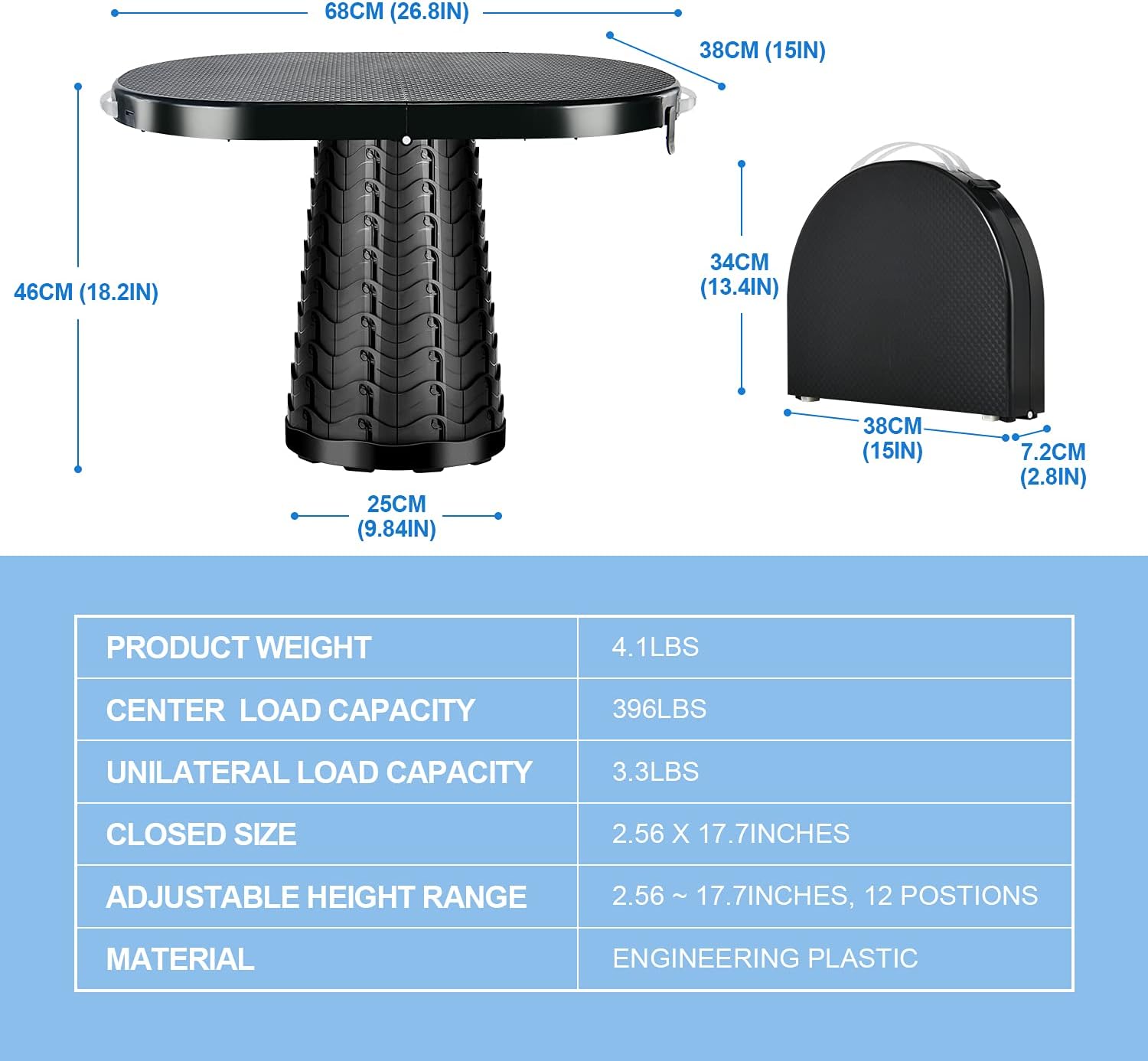 | Additional Features | Portable, Foldable, Adjustable Height, Lightweight, Collapsible, Storage, Easy Assembly |