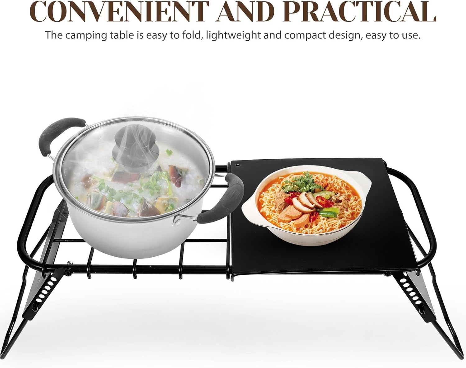 Package List 1 x folding table Features -Material:Metal, Steel -Size:60.00X20.00X13.50cm/23.58X7.86X5.31in -Note: This product comes with a storage bag grill table. -Product Info:Telescopic folding table -Color:Black -A multipurpose and portable camp table can be a perfect gift for your friends or families who love outdoor picnic or camping Folding Grill Table. -The small camping table is made of sturdy metal and steel material, durable, wear resistant and not easy to break. -The table has a wide application, suitable for outdoor party, camping, picnic, hiking, fishing or at home camping table for grill. -The compact camping table can be folded easily, and packed in the storage bag, easy to store and carry for outdoor outdoor tables. -The camping table is easy to fold, lightweight and compact design, easy to use camping dining table.Goods Informationcamp table foldable Great for taking on the go.outdoor folding table This camping table is very convenient to storage and transport.camping table for backpacking Metal and steel material is stain resistant, and the table legs are strong and sturdy.camp has durable and portable features, so it can be served as a perfect choice for your vacation and outdoor activities