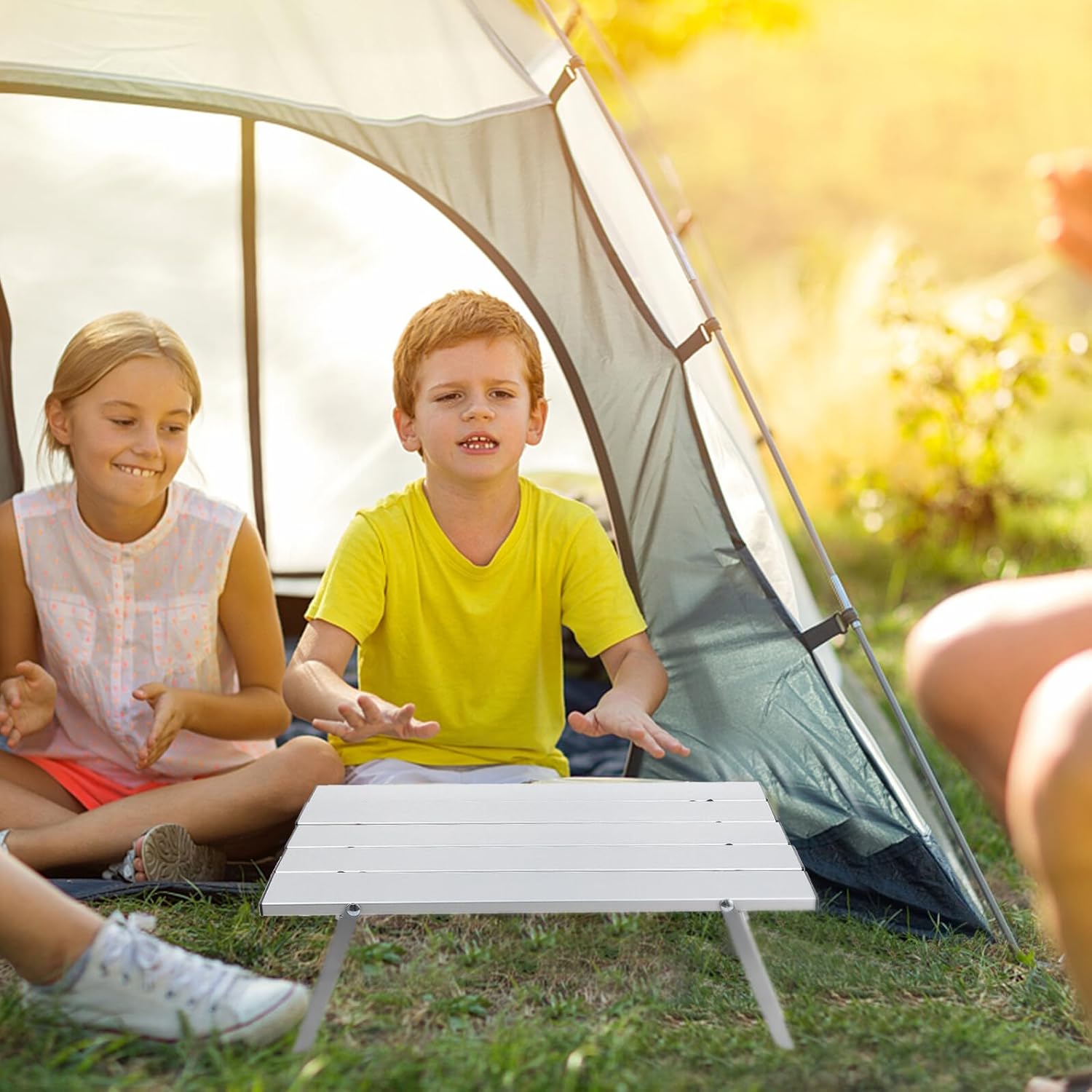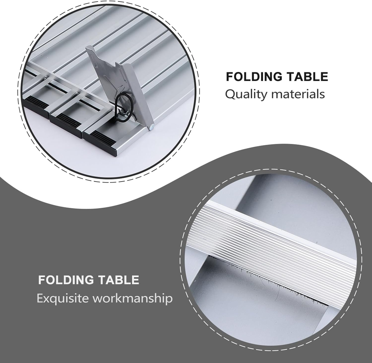 Package Include 1 x folding table Characteristics - Color: Silver. - Size: 40.00x29.00x25.00cm/15.72x11.40x9.82inch. - Material: Aluminum alloy. -Product Info:Portable folding table - Unlike normal wooden or cloth tables, there is a more sturdy and flat surface camping desk. - Rugged enough for all your outdoor needs like backpacking, camping, BBQ’s and picnics foldable desk. - Folding camping table is made of aluminum alloy frame for a heavy-duty and durable table that’s also lightweight aluminum alloy table. - Easily fold, with small storage capacity, so that you can store in the convenient drawstring bag. Easy to transport and setup without any tools folding table. - Install the folding camp table easily within several seconds. Quick to fold out and take with the carry handle travel table.Goods Descriptionfoldable table Durable and portable features can be served as a perfect choice for your vacation and outdoor activities.foldable picnic desk This outdoor folding table is very convenient to store and transport.foldable camping table material is sturdy and easy to clean.foldable picnic table Great for taking on the go
