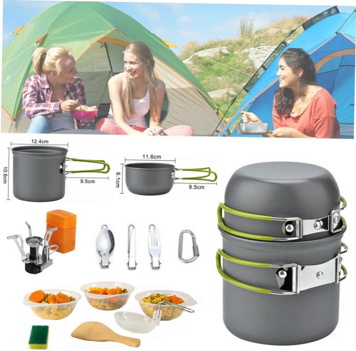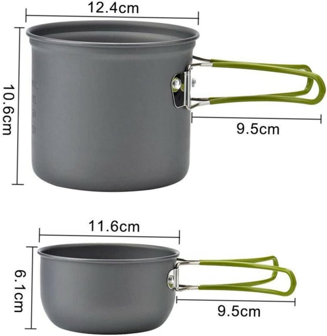 Package Include 1 set x accessories Features - Size: About 10.6x12.4x12.4cm/4.17x4.9x4.9 inch Cooking . - Material: Aluminium alloy Non-stick Pan. - Color: Grey. - Items includes small cup , small cup bowl, spoon, , fork, stove , small bowl, shovel, plastic scoop, cleaning brush, and buckle accessories Camping Accessories. - Made of materials for and use Portable Teapot. - Lightweight and aluminum alloy perfect for camping backpacking. - Reliable performance will help you cook food perfectly on the table every time. - This outdoor cooking set is designed perfectly for 1-2 people. - Enjoy a good outdoor activity with this camping cooking set.Goods InformationCooking Lightweight and , perfect for camping backpacking, , picnic and other outdoor activities.Non-stick Pan This item is a set of , fork, and tableware accessories set which is made of high qulity aluminium alloy materials for and long time use